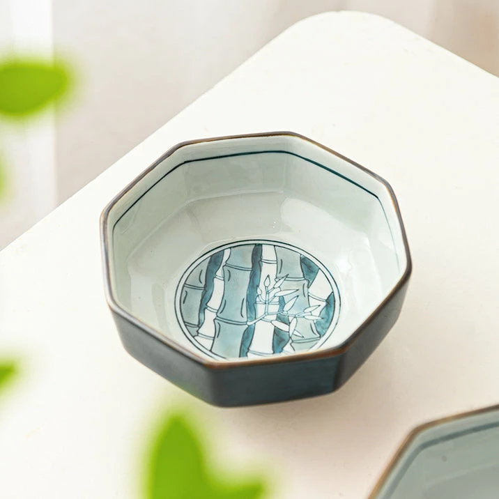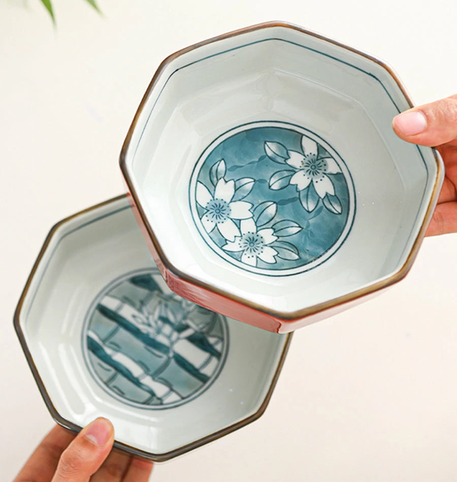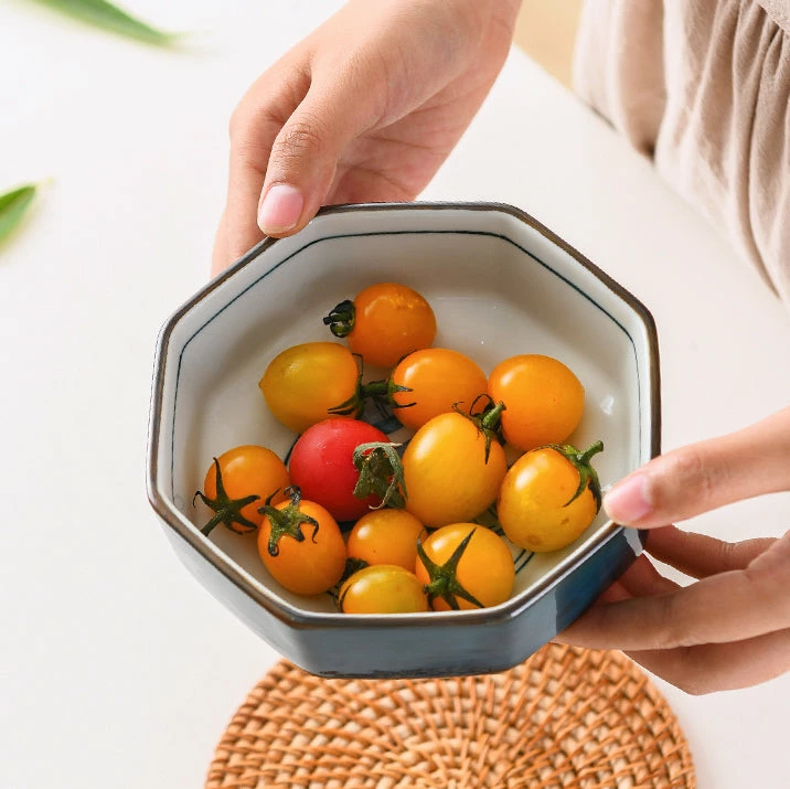 Love Japanese dishes? Indulge in an authentic Japanese dining experience by serving your favorites in these Ako Blue and Red Japanese Octagonal Serving Bowls. These are glazed ceramic bowls with a soft octagonal shape. On the bowl’s body is a hand painted blue pattern. The 14.5cm size is just perfect for serving fruit or appetizers.