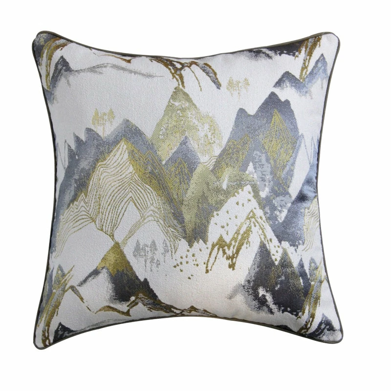 Vivid blue skies and snow capped mountains are the inspiration for this throw cushion. This makes it a great match with modern Scandinavian or nordic furniture and décor. The matching piping adds a finished look. Plump insert included.