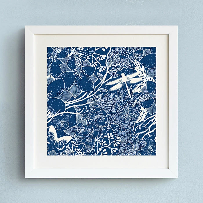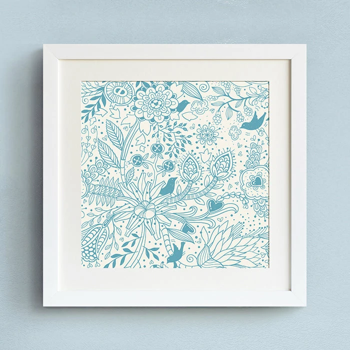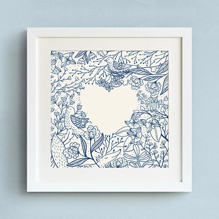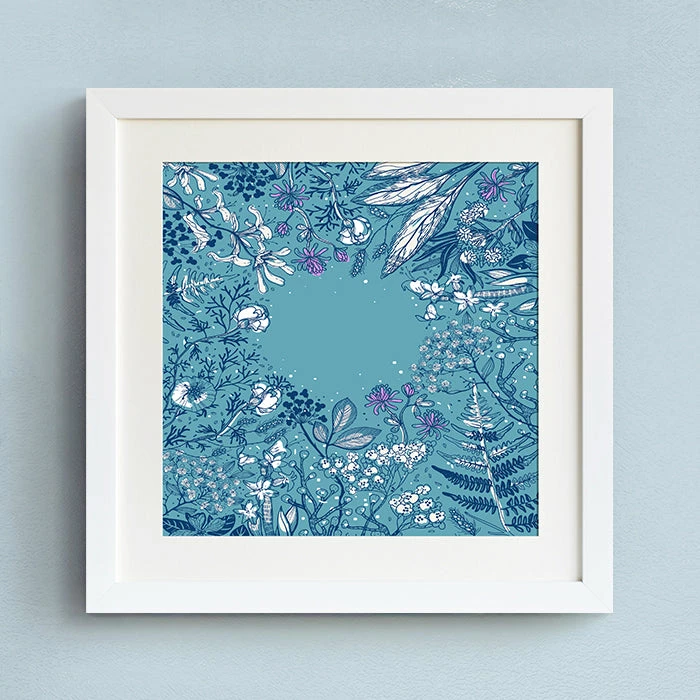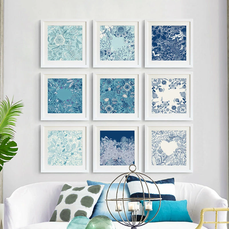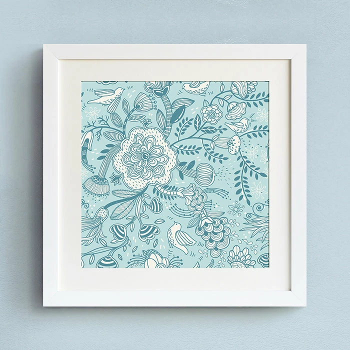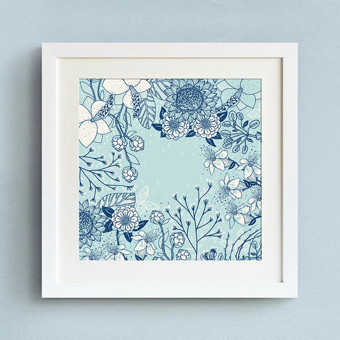 Bring in visual poetry to the favorite space in your home in the form of our Blue Floral Wall Art pieces. These botanical beauties come in nine different styles, colors ranging from an enticing aquamarine to subtle midnight blue. Put them up together to create a classic gallery wall that will turn quite a few heads in admiration. The classic white frame adds an elegant appeal to the pictures, making them look almost ethereal. Every wall art piece is ready-to-hang right out of the box.