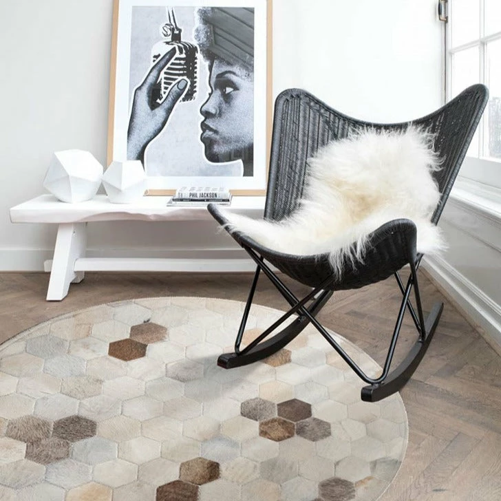This honeycomb rug is super smooth to the touch. It features an intricate hand-sewn patchwork pattern which is very unique. It’s a hand made, natural product, but the pattern also gives it a lovely modern look that we see working well with eclectic or Skandi interiors. Round rugs are great for settings with round tables, or to accompany a single statement lounge chair and side table. This one is available in a huge array of sizes from 1m, right up to 2m in diameter, and it includes Free Delivery in Hong Kong.