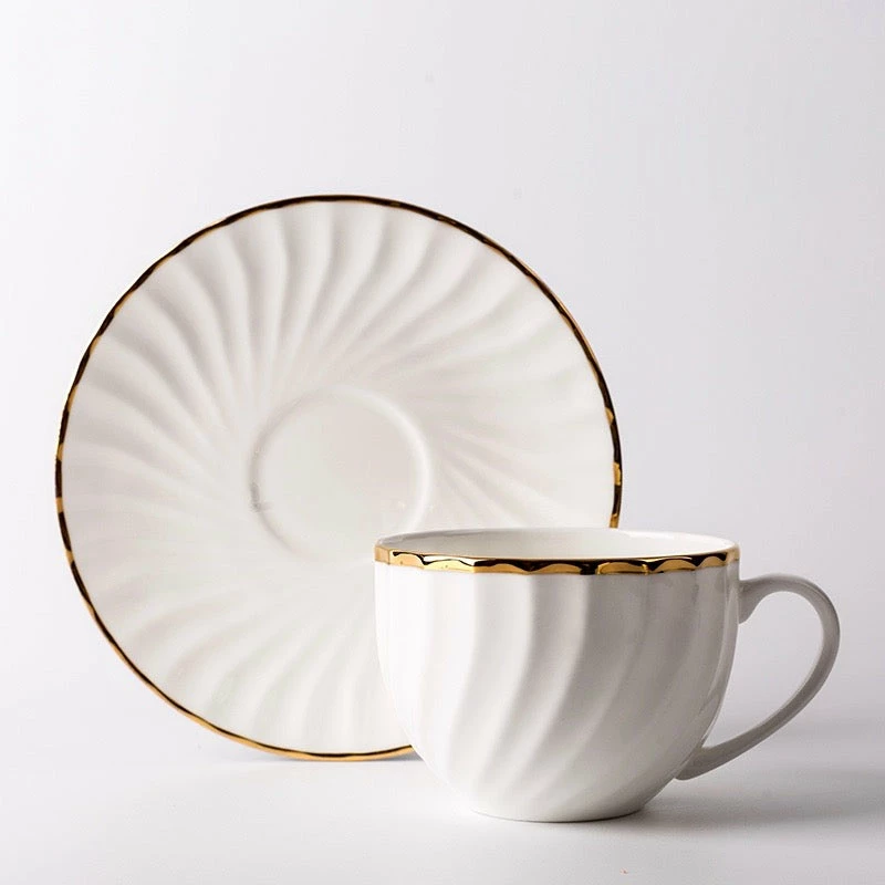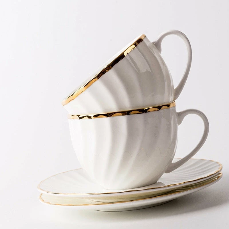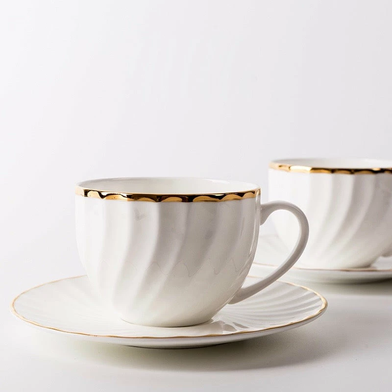 Dining and entertaining at home will now be a little more stylish with this bone china porcelain teacup with matching saucer. Designed with a classic style and finish, this dainty little teacup set comes with a gorgeous gold trim on the cup’s mouth and on the saucer’s edge. With its understated elegance, it makes sipping tea a little more luxurious. This chic pair will easily complement the rest of your teaware and even dinnerware collection. Available as a single pair or as a set of four teacups and saucers.