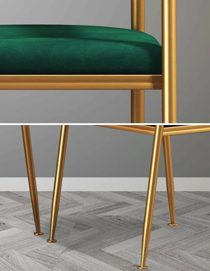 - Materials: Polyester Velvet Upholstery, Powder-Coated Gold Metal Legs