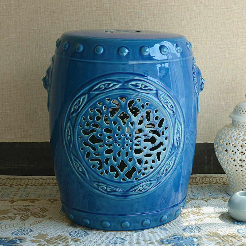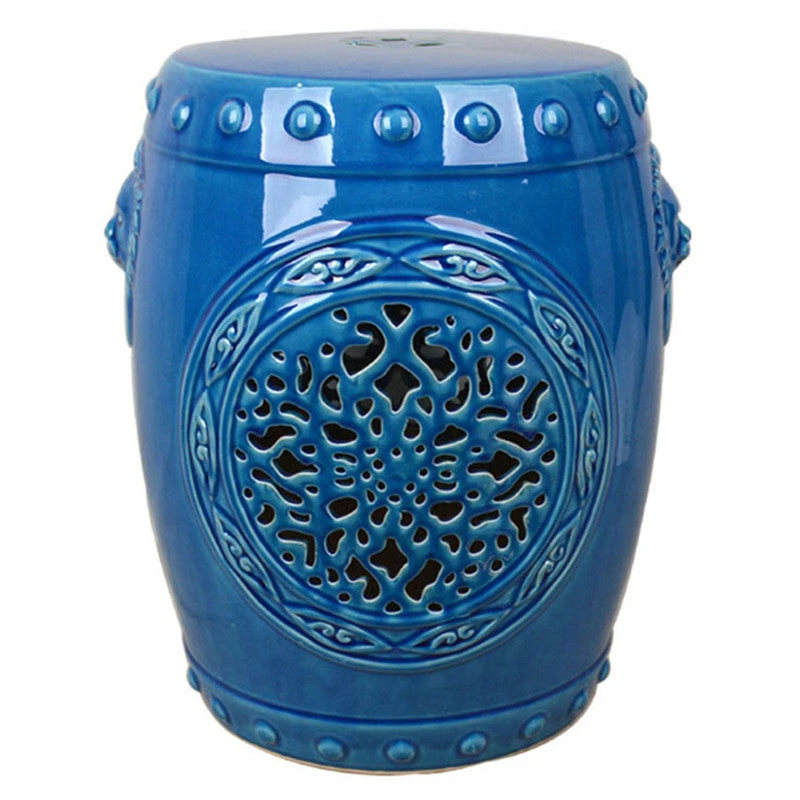 Give your home a style boost by adding pops of color all around. This Blue Chinese Ceramic Garden Stool delivers a sophisticated hue to a spot in your garden and even to a dull corner in your living room or bedroom. Chic enough to be displayed indoors and outdoors, this versatile stool with an Oriental vibe would make a great extra seat, coffee table, accent decor, or plant stand. This piece is expertly crafted in ceramic and finished with a shiny, weatherproof glaze.ย