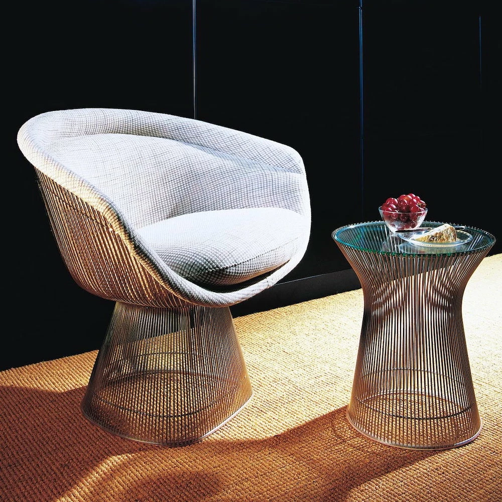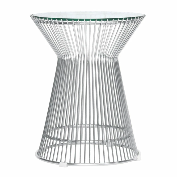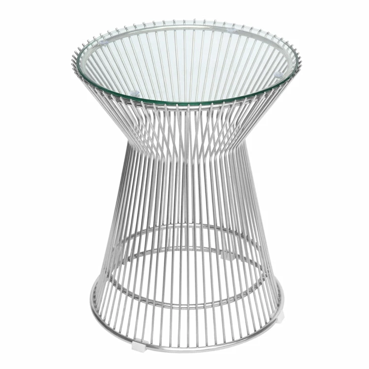 Warren Platner was one of the iconic American designers of the 1960’s. An interior designer and architect, he is world renowned for modernist collection of furniture. Some of his best known works include the Warren Platner Table which is constructed from humble materials of steel and glass, sculpted into beautiful shapes. Though the coffee table is best known, the collection also included related items including the Platner Side Table. Made in the image if the iconic coffee table, it is similar in design, but in a different form that is ideal as a side table for a lounge setting. Our faithful replica platner side table is inspired by the original and closely follows the original proportions and materials. Made of 304 stainless steel and cut glass it’s well made makes a beautiful and timeless addition to your lounge setting, or even as a bedside table.