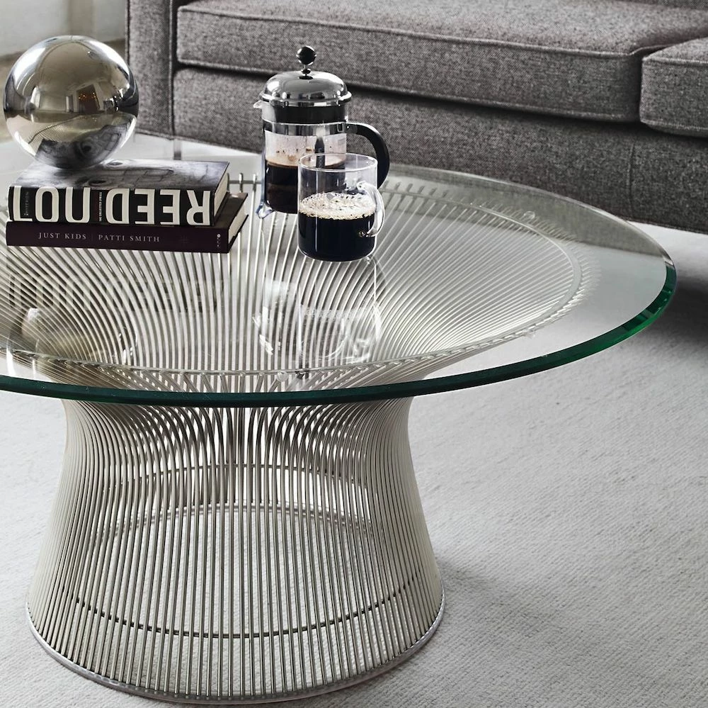 A design classic, the Platner Coffee Table has a simplicity and elegance that bring an understated lux to a lounge setting. Created by American architect Warren Platner, it looks as good today as it did when it was designed in 1966. Our faithful reproduction is made of stainless steel with an 80cm glass table top.