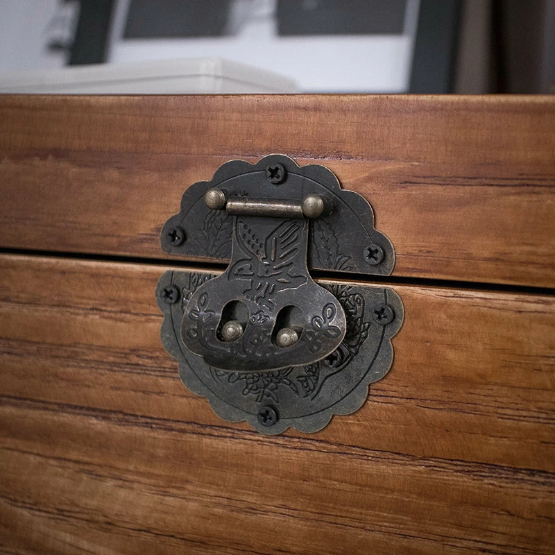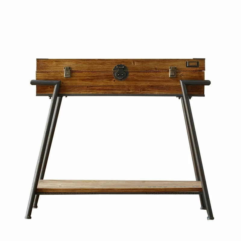 Bring some East-meets-West charm to your home with this beautiful vintage style, solid wood console table and chest. The mix of stained wood and steel also give it a cafe industrial style feel. Lift the lid and it can also be used for storage, plus a bottom shelf for shoes or decorative items. Great for an entrance hall or bedroom.