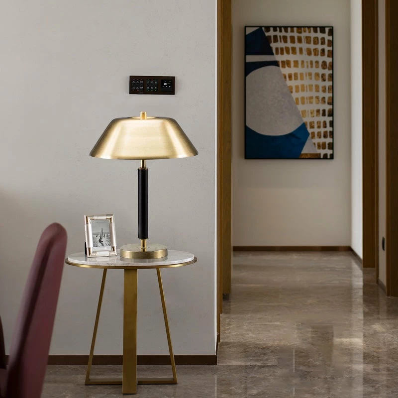When your clean, modern space needs a bit of character, furnish it with this Future Deco Black and Brass Table Lamp. This piece has an illuminating mix of contemporary and vintage style with its sophisticated metal structure and brass finish. The angular yet streamlined silhouette gives off a dashing and dramatic aesthetic that’s sure to catch attention. Striking and cool but never flashy and cold, this black-and-brass combo will freshen up your space and give it some luxurious illumination. Bulb included.