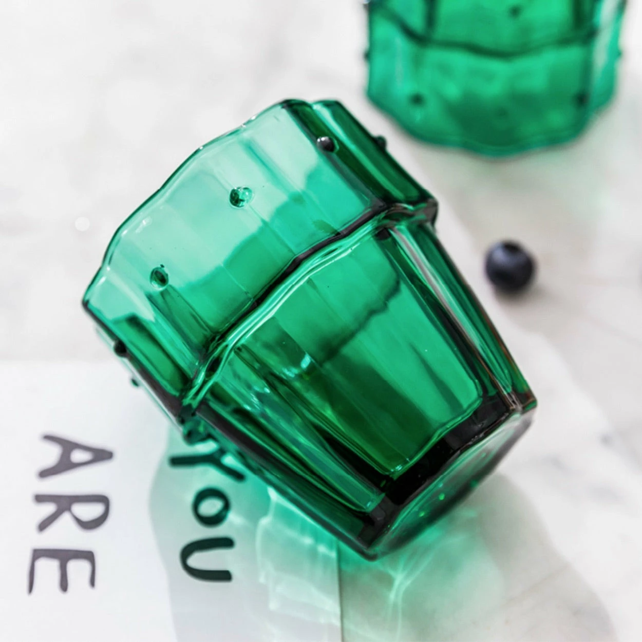 A charming set of six green cacti glasses that brings the desert right to your countertop. This eye-catching kitchenware will not only be helpful in hydration but also in making your space look stylish and sharp. Stack these 220 ml vivid green glasses to form a cactus sculpture and watch it become a statement decor. Expect this whimsical set of glasses to add color, life, a bit of character and a touch of brilliance to your kitchen and dining area.