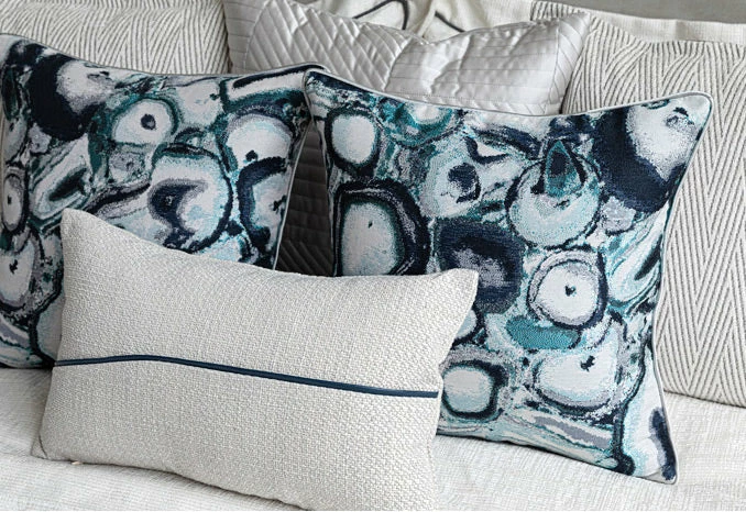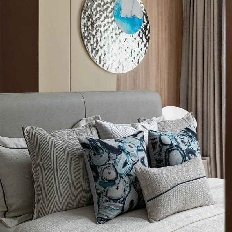 Transform your space with this set of Grey & Blue Agate Pattern Bed Cushions. Get the whole set or build your own bundle to style your bedroom or living space. This cushion set is available in four different styles and sizes, with an option to include a bed runner suitable for a 1.5m or 1.8m bed.