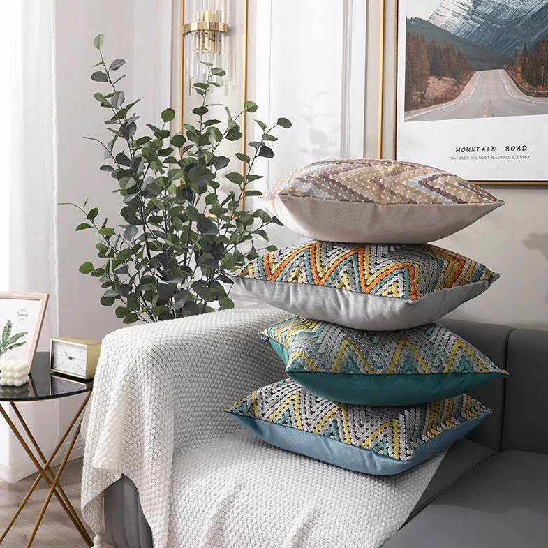 Designed with a versatile motif, these embroidered Chevron Pattern Throw Cushions displays a bit of contemporary, a hint of classic, and a dash of cottage chic style. You can use these patterned throw cushions to pair with graphic florals, paisley, checks and stripes, geometric, or animal prints. The punchy zigzag works well with just about any design scheme and can be used to add another layer of contrast to your space.