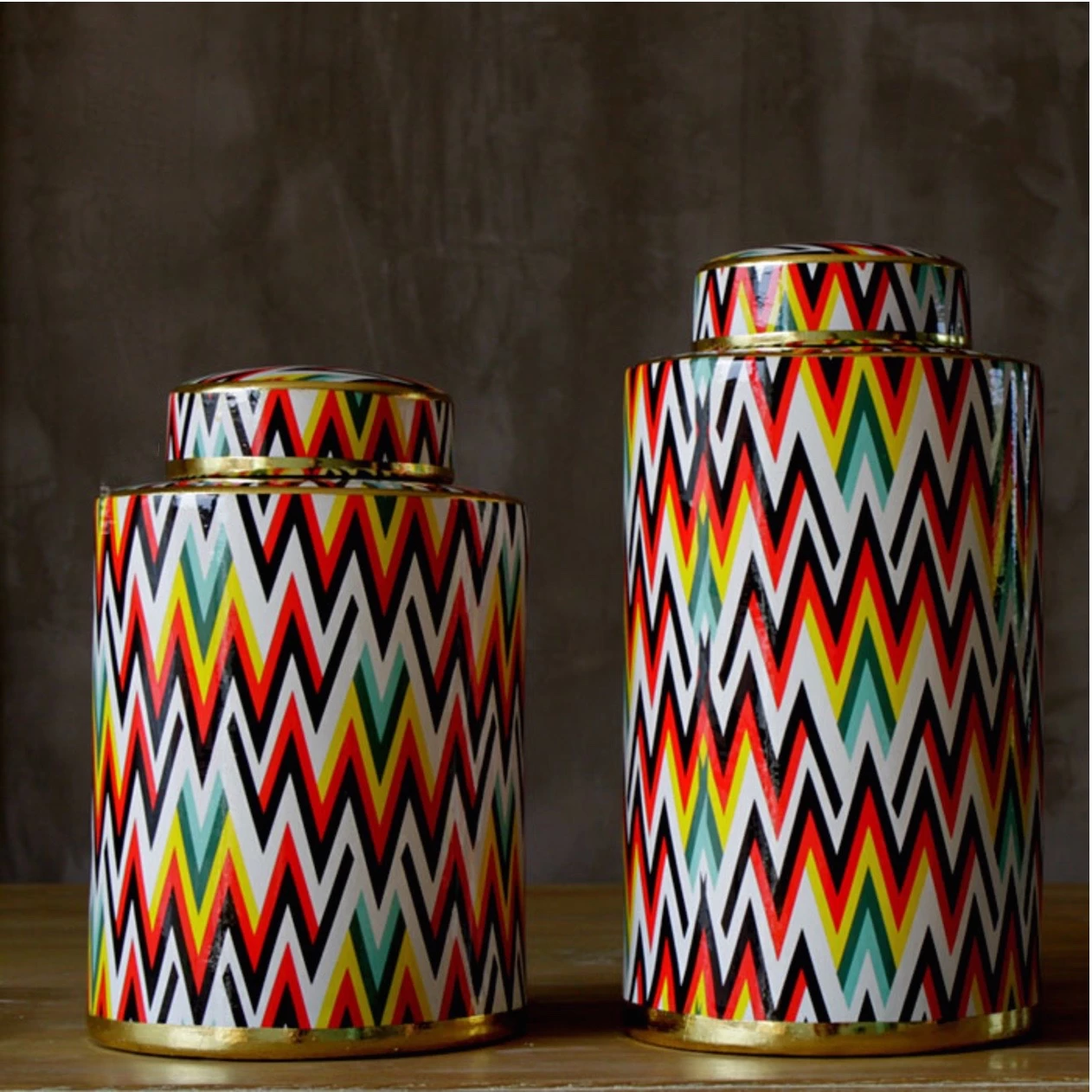 We love the vibrant colour of the chevron pattern on these stunning Urn Vases. It’s almost a bit Missoni-like 😉 They also feature hand painted gold accents – each piece is unique. Hand made of ceramic, they have a beautiful repeating pattern that works well in modern interiors. Available in different sizes, pairing them together will add to the effect.