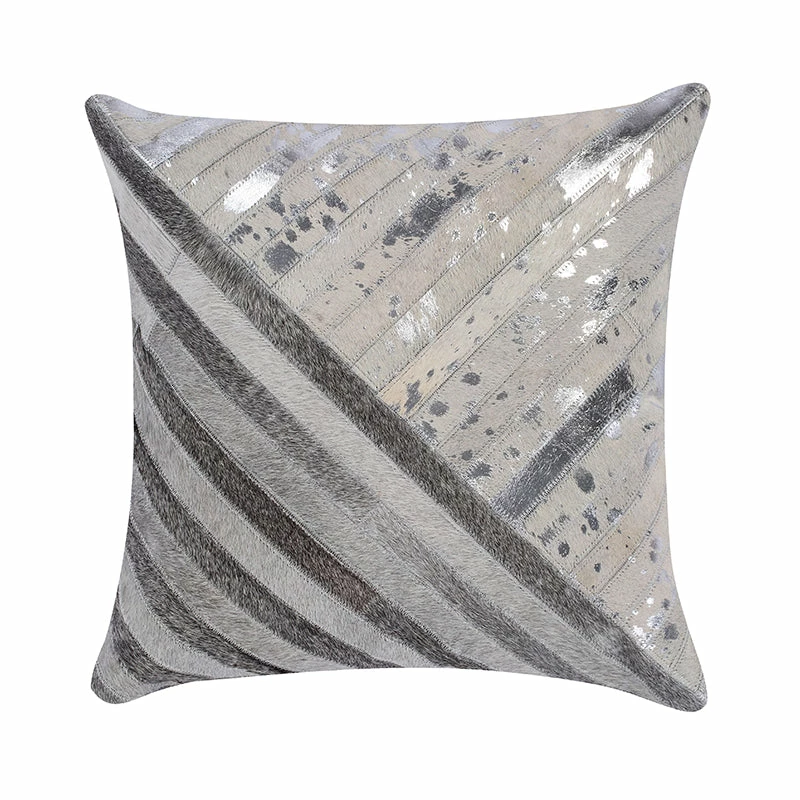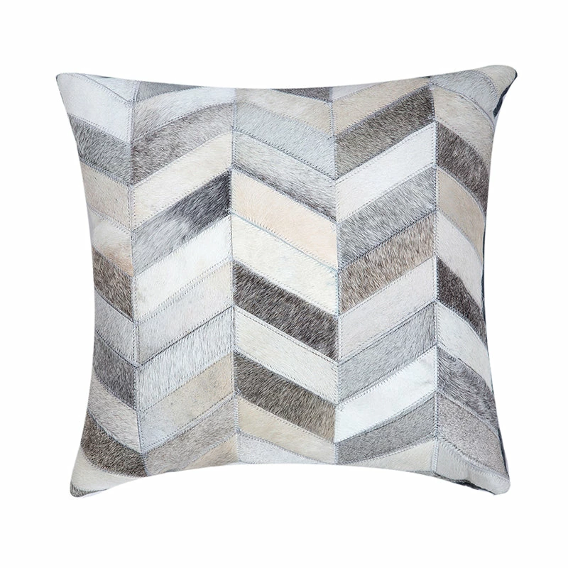 We love the combination of soft grey and ivory in this throw cushion cover. A modern chevron pattern is a beautiful contrast with the warm tones and texture of the natural hide. It makes a great addition to modern sofa settings or arm chairs.