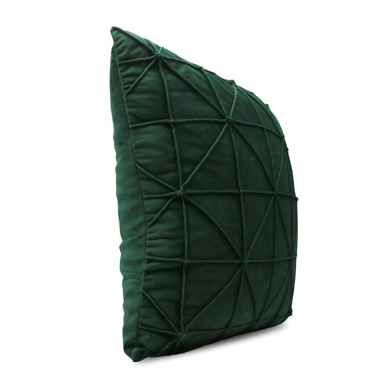 See that exquisite shade of green? This Emerald Green Geometric Throw Cushion is loved for its dramatic impact. Whether it’s in a living room seating area or part of a bedspread, this decorative throw pillow will add an elegant flair. Your interior design style won’t matter, too, for this textured throw cushion in a beautiful green shade works in both traditional and modern settings. Unleash your creative side and have fun pairing this green pillow with ivory, beige, seafoam or even peony pink decor.