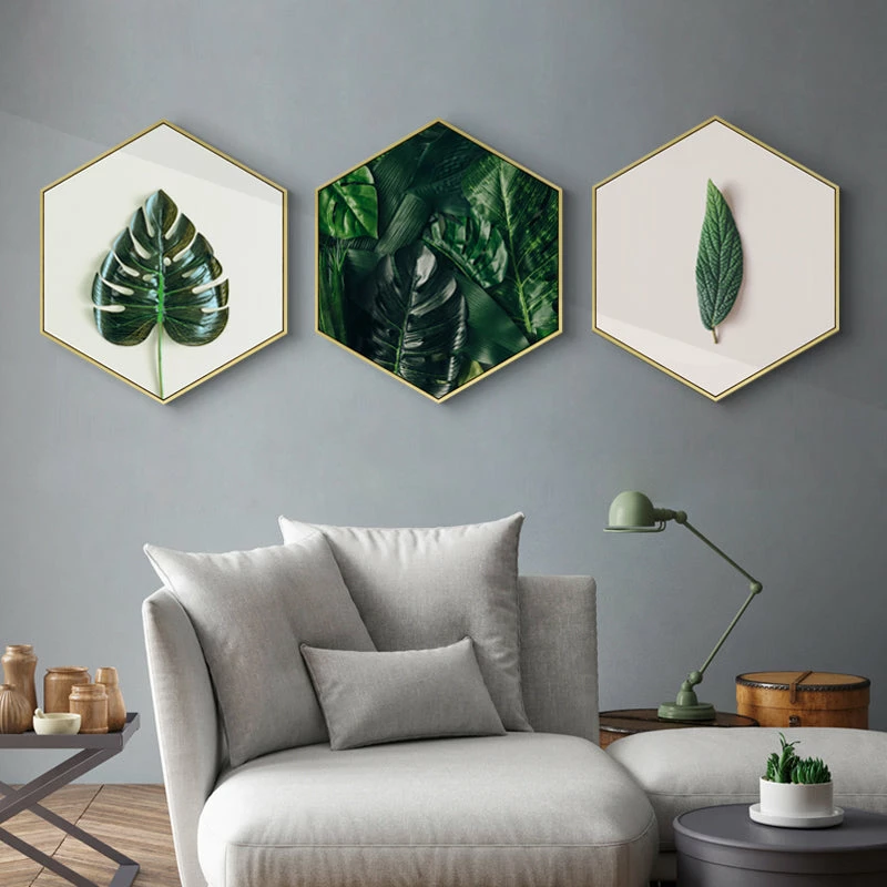 This piece of fine botanical wall art frame fills the home with vitality. We love this framed wall art because the lush green leaves create a refreshing vibe in the room where it is used. You can use it in your living room, dorm, office, kids’ room, bedroom or any other room to for an amazing look. This hexagonal gold floating framed canvas painting is made using environment-friendly material and comes in eight different styles from which you can make the selection that best complements your home decor. These products are available in three different sizes which are shipped worldwide. In Hong Kong, we offer free shipping,