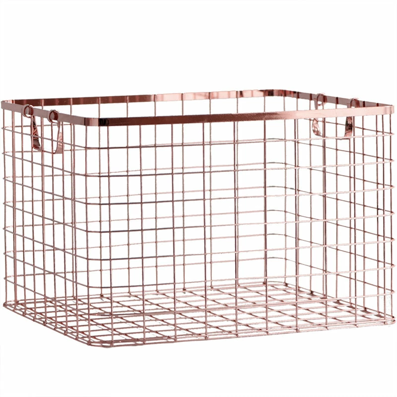 Copper and rose gold is one of our favorite finishes in home décor, and it looks like it’s here to stay. One of the reasons for this is: as a metal it’s fairly neutral and easy to match with almost any color. We love these beautiful Copper storage baskets. Great for storing and displaying items on bookshelf nooks or side tables. They’re available in three sizes and ship worldwide for free, which is always nice 🙂