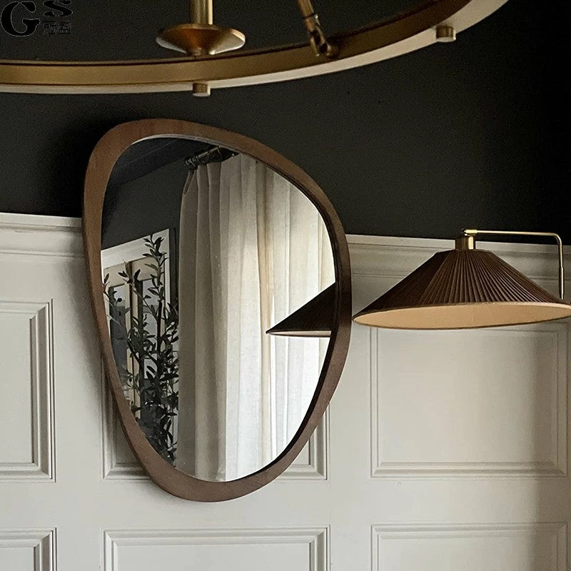This mirror in a beautiful amoeba shape is a statement piece for any room. Hang this mirror in a corner in a bedroom to create a dressing area. Place this in your living room to bring more light and warm to the space. Hand-crafted and framed in walnut wood, this Asymmetrical mirror will suit any style from mid-century modern to an eclectic home.