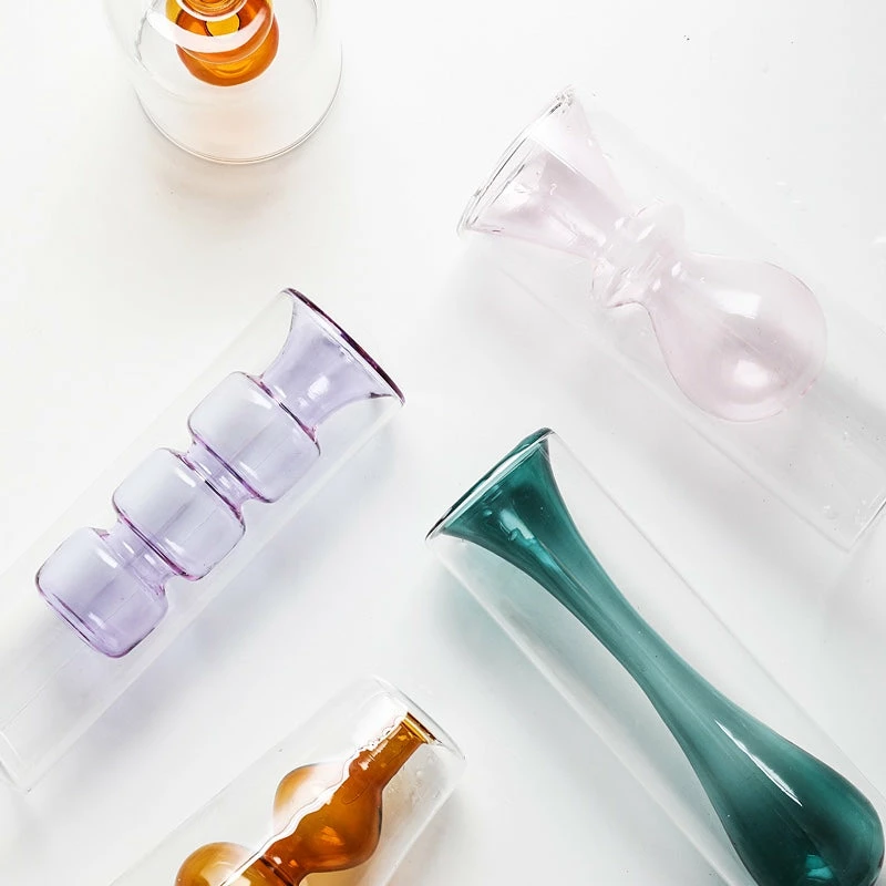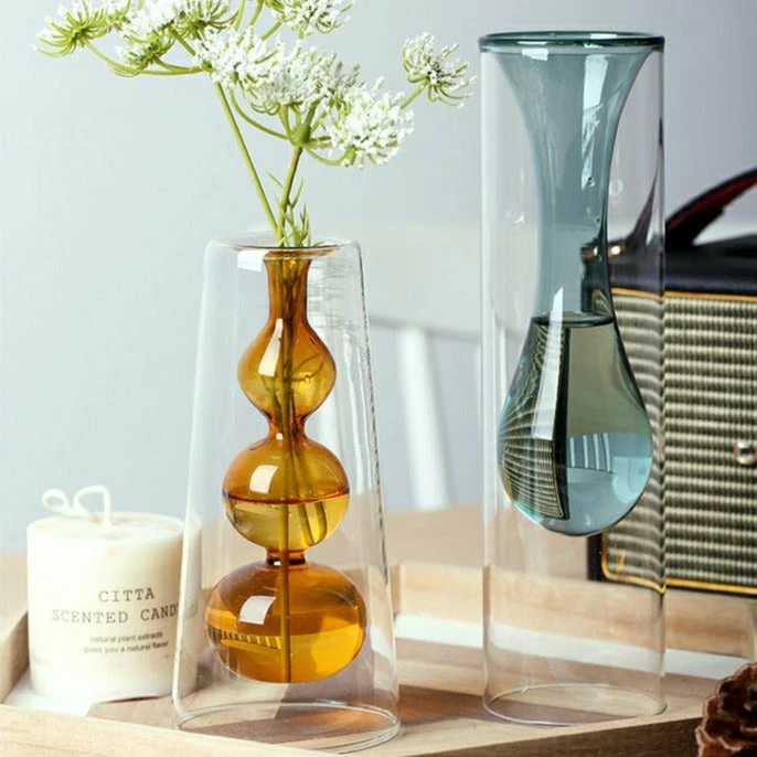 Anything that gets the honor of holding beautiful floral arrangements has to look gorgeous too. We realize this and thus, have come up with our stunning Inside Out Double Walled Glass Vases that are nothing short of a visual delight. Featuring five exquisite vase shapes in colored glass nicely encased inside a clear glass wall, these vases can be a wonderful addition to consoles and tables. You can also gift them to near and dear ones on special occasions.