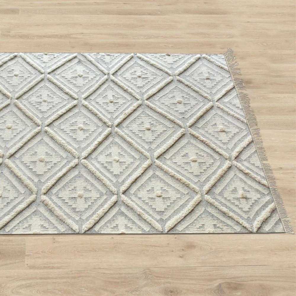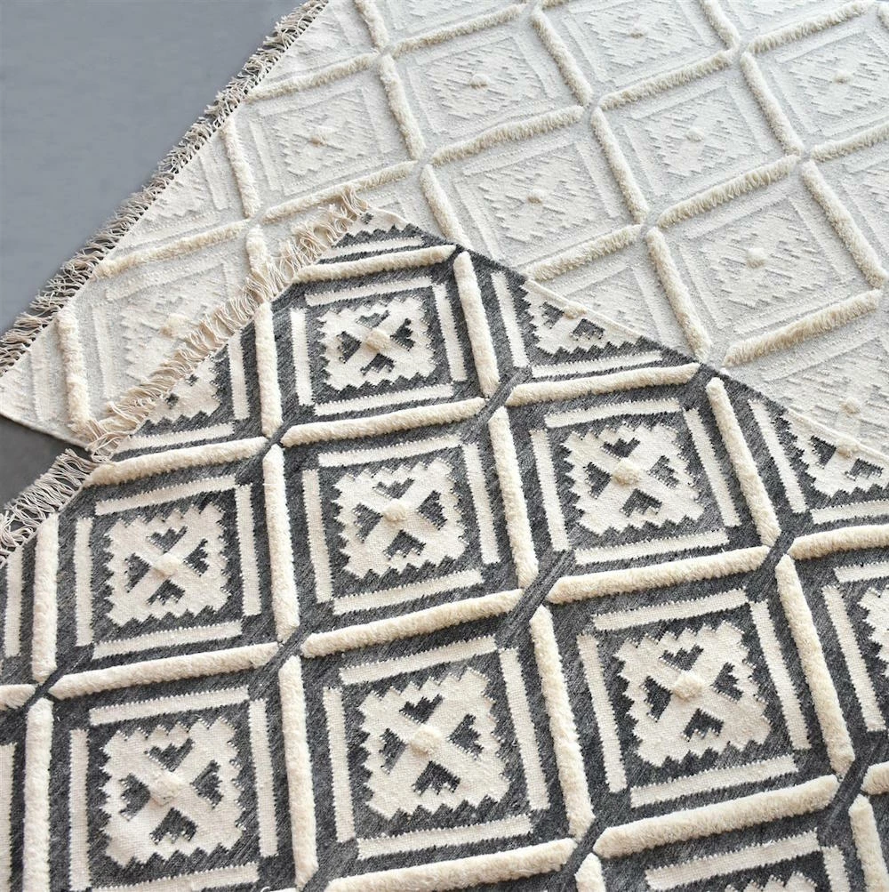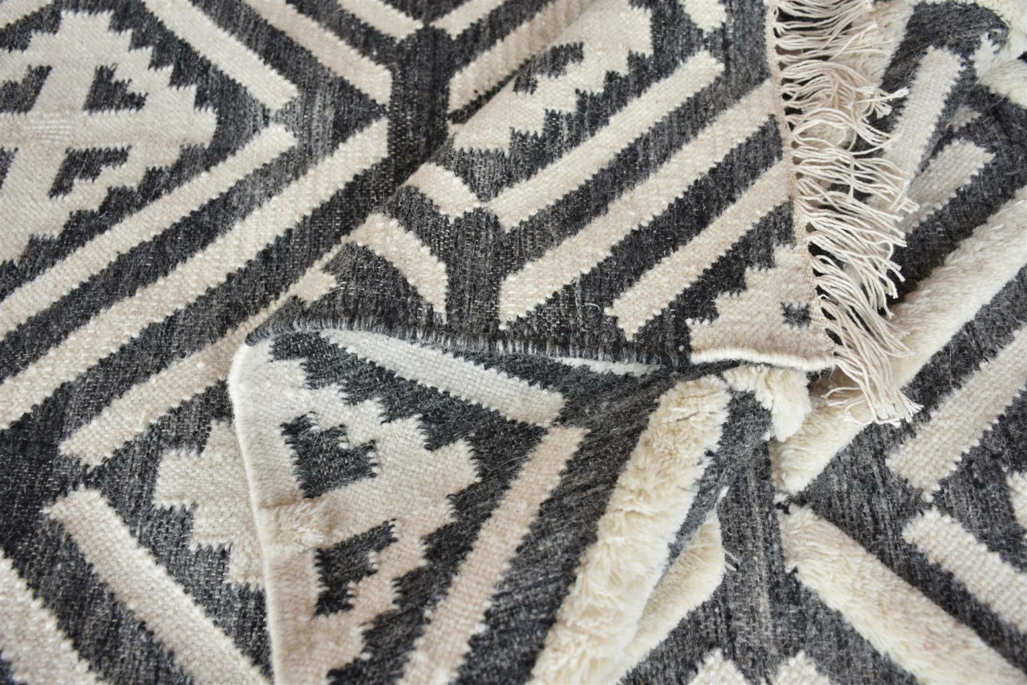 The Iruti Textured Modern Tribal Rug is one of our favorites because of its classic pattern. This hand-woven woolen Kelim rug has a smoother texture which feels excellent underfoot. With this rug, you as well as your guests would definitely have a luxurious and indulgent experience. It is perfect for everyday use and has low maintenance. You can use it in the living room area, master bedroom, kitchen or dining room. This product is available in five different sizes and two color options., from which you can make the selection as per your taste and preference. We ship it worldwide for free.