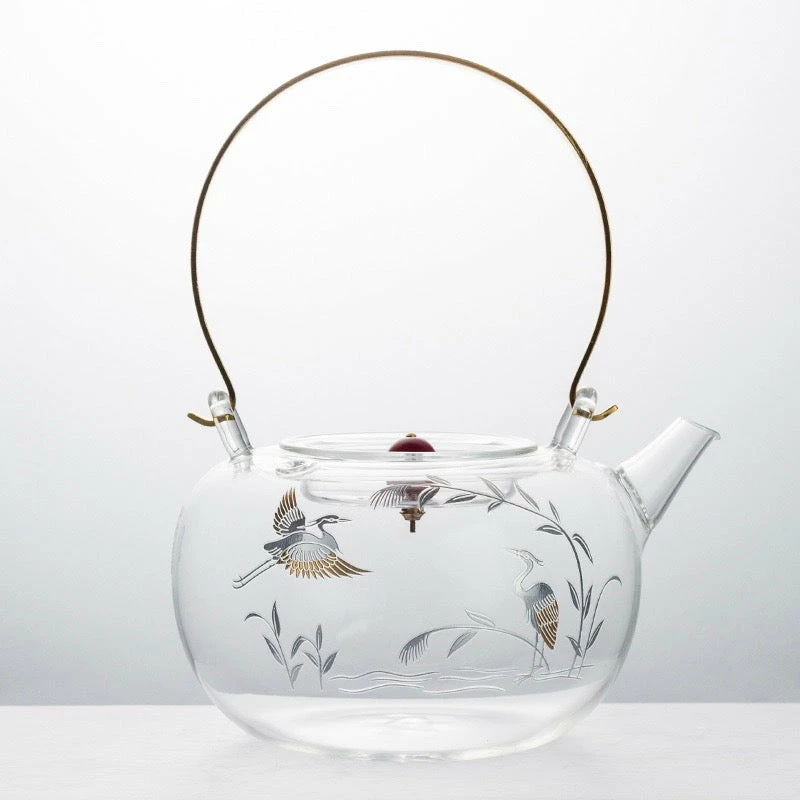 What a gorgeous glass tea pot this is! It beautifully displays the steeped tea’s color with its see-through glass chamber. The pot has just the right size, one that’s big enough to let tea leaves expand and allow the water to circulate. Adding beauty to the minimalist silhouette of the glass pot is a Japanese flora and fauna print and a chic metal handle in gold finish. Whether you’re having afternoon tea with friends or by yourself, this tea pot has the soothing look that can make your steeping moment a truly relaxing one.