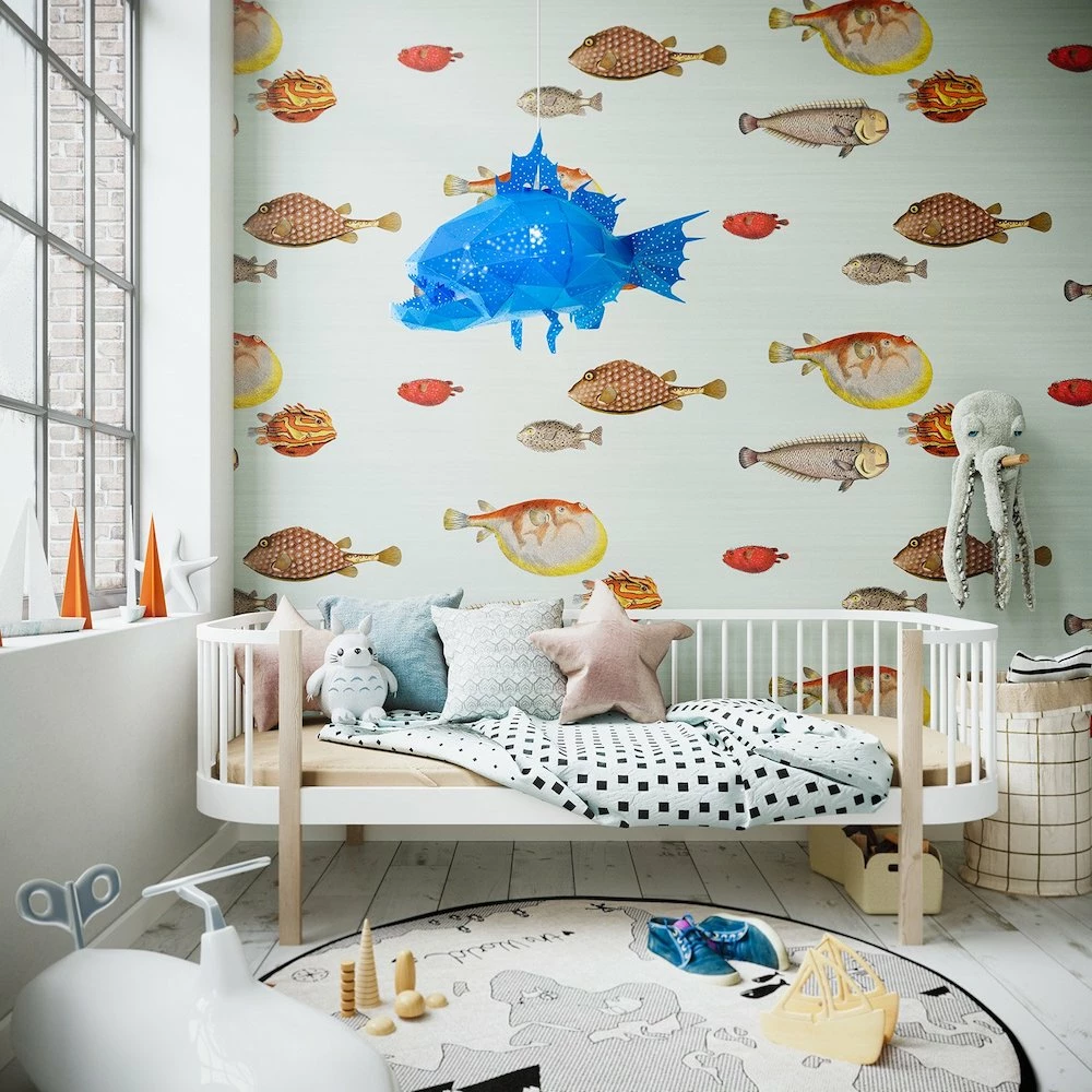 This sea-themed handmade origami ceiling light will spruce up any space with a real bite. Crafted to mimic the silhouette of a grouper fish, this hanging light source features a sculpted shade fashioned from kraft paper fabric or lampshade foil. It requires an E27 LED bulb and can light up a 10-15 SqM room with a so-fish-ticated glow. Place it in the nursery or a child’s bedroom, or even in an adult’s bedroom, to inspire wonder, fascinate the mind, and bring interest to an otherwise mundane space. This is a sturdy pendant light that you can count on no just as a source of illumination but also as a source of delight.