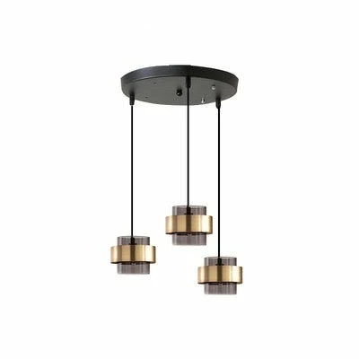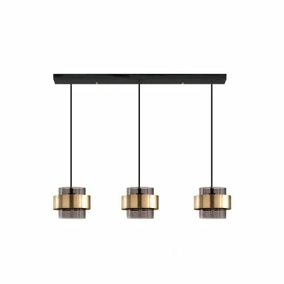 Let the Modern Gold and Smokey Glass Pendant Light help you create a romantic atmosphere in your dining room. This light source features a cylindrical glass shade in a smokey gray finish encircled by a metal gold band at the center. You have the option to choose among three different light set-up: a single pendant, a 3-light linear pendant, or a 3-light round pendant.