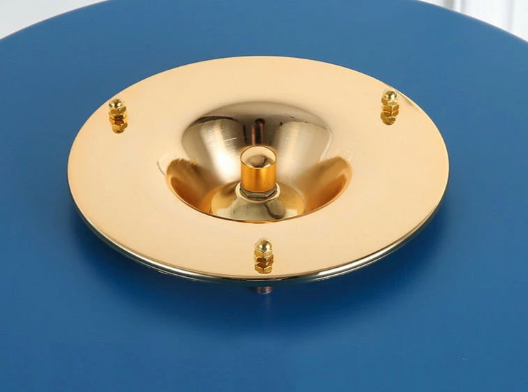 - Materials: Metal frame and shade with gold and coloured finish on the shade