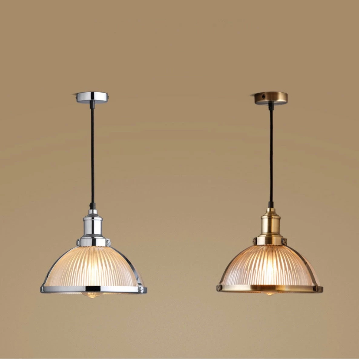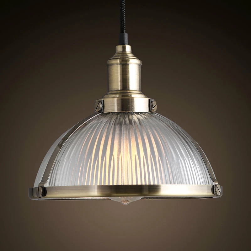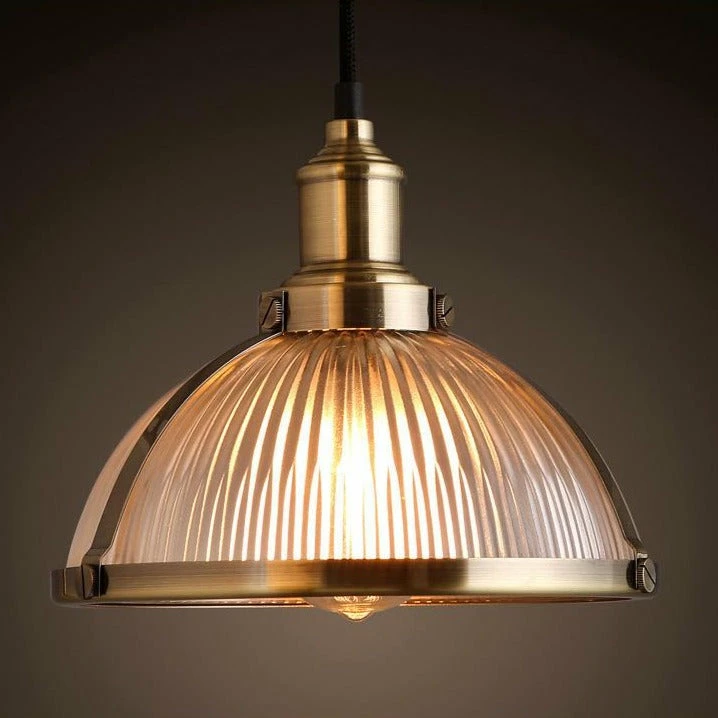 These stylish pendants combine industrial charm with a touch of modern luxe. The shape of the shade is reminiscent of warehouse downlights and the ribbed texture of the glass shade lends a distictly vintage feel. But we love the contrast of brass or chrome to offset and add some some elegance. These can work well in multiples above a long dining table.
