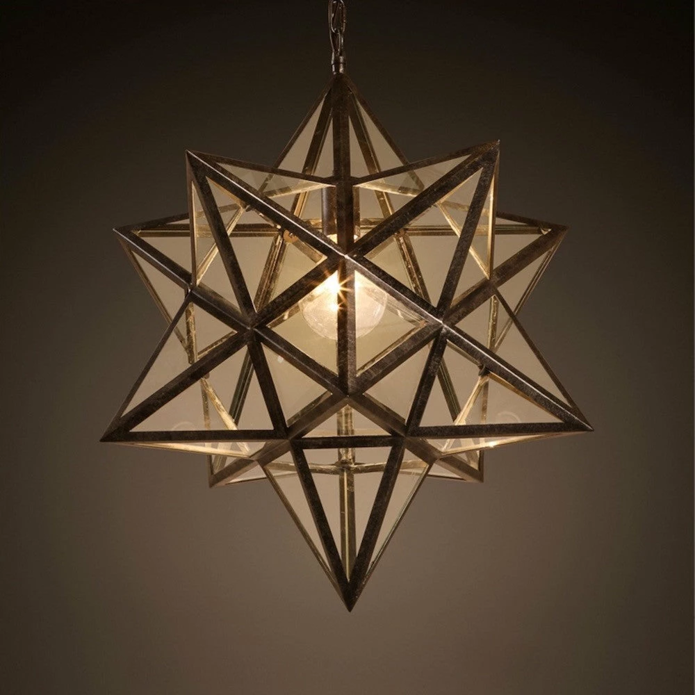 - Materials: Iron shade (black) / Copper (vintage gold) with glass panels