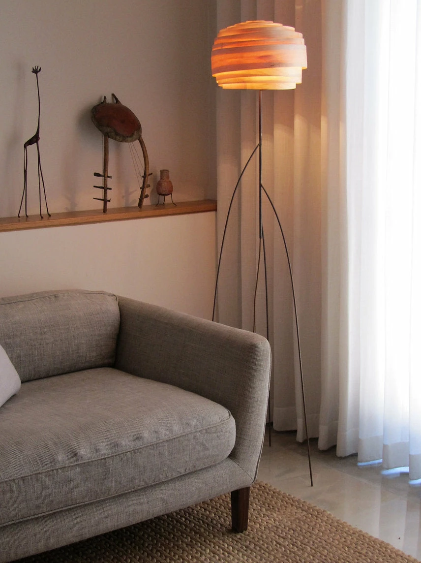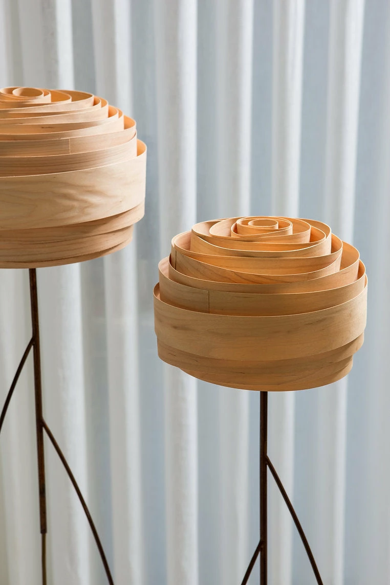 This beautifully designed wood veneer floor lamp is the work of Israeli designers Katharina Brand and Tzuri Gottlieb, under their lighting brand, Studio Vayehi. The lampshade is supported by rusted iron legs that reach for the ground like aerial roots. Each lampshade is freely sculpted from a continuous strip of wood veneer.