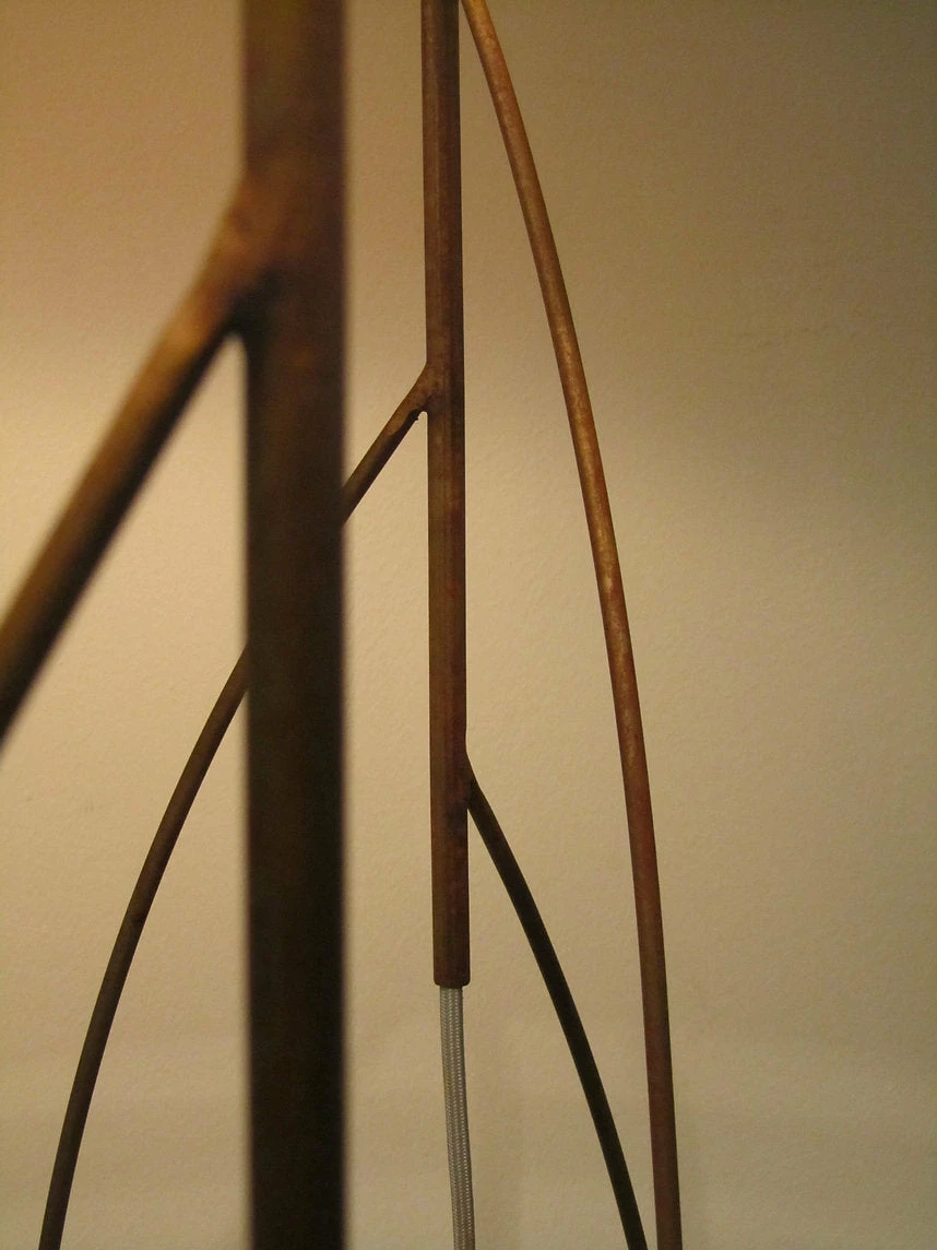 Wood veneer (maple), oxidized steel - Dimensions: Overall H130cm Lampshade H20 x W30cm / Overall H160cm Lampshade H22 x W33cm