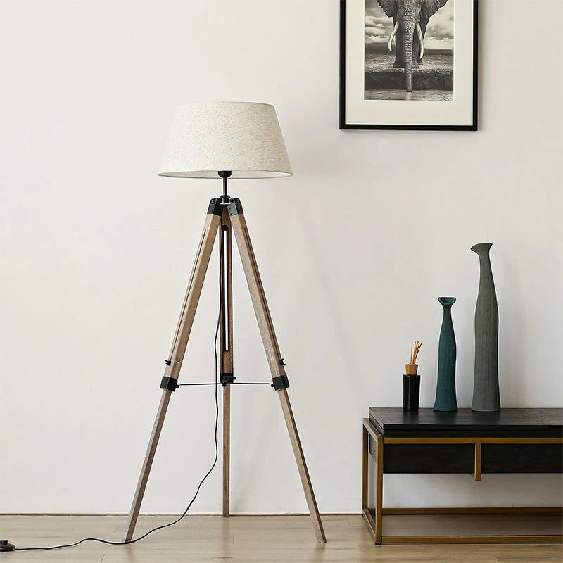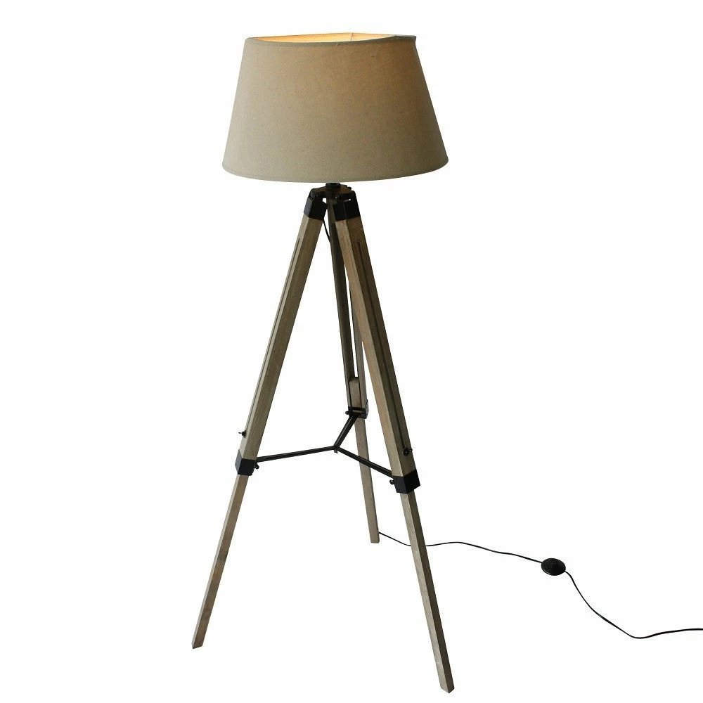 This characterful floor lamp is a lovely mix of classic and industrial. The tripod in weathered natural wood with black trim gives it a lofty feel, while the beige fabric lends elegance. The result is a modern floor lamp that feels equally at home in modern or classic interiors. The tripod legs are adjustable so it can be used for focused or ambient lighting.