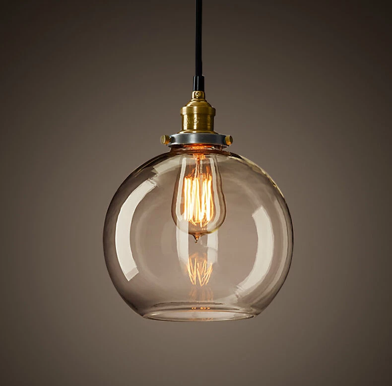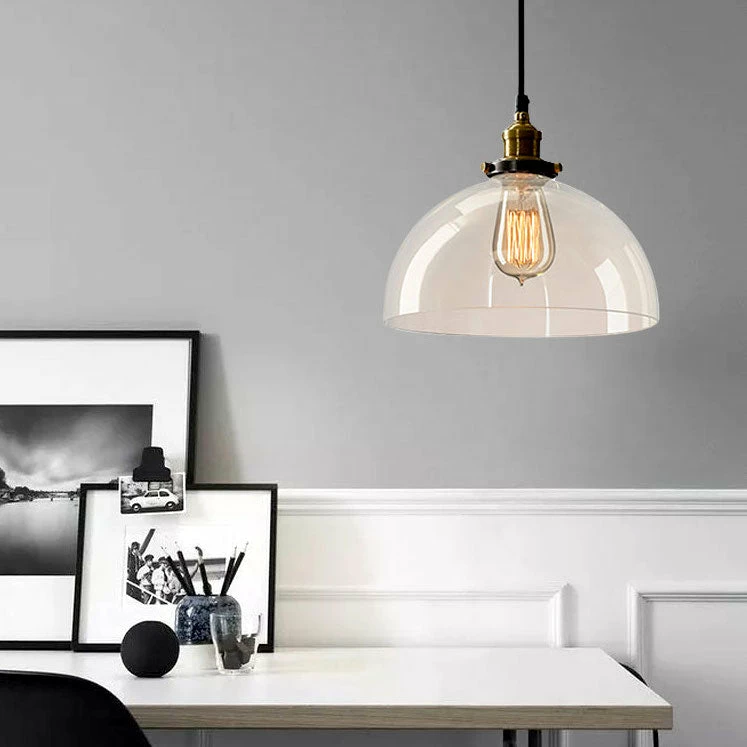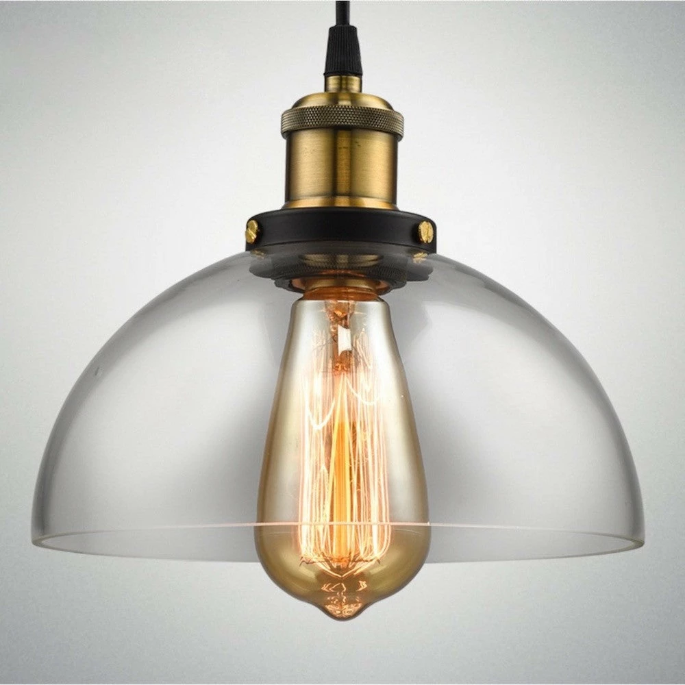 Interiors trends come and go, but we think vintage bulbs are a timeless classic. A brass base offsets this glass pendant, showcasing a beautiful retro bulb.