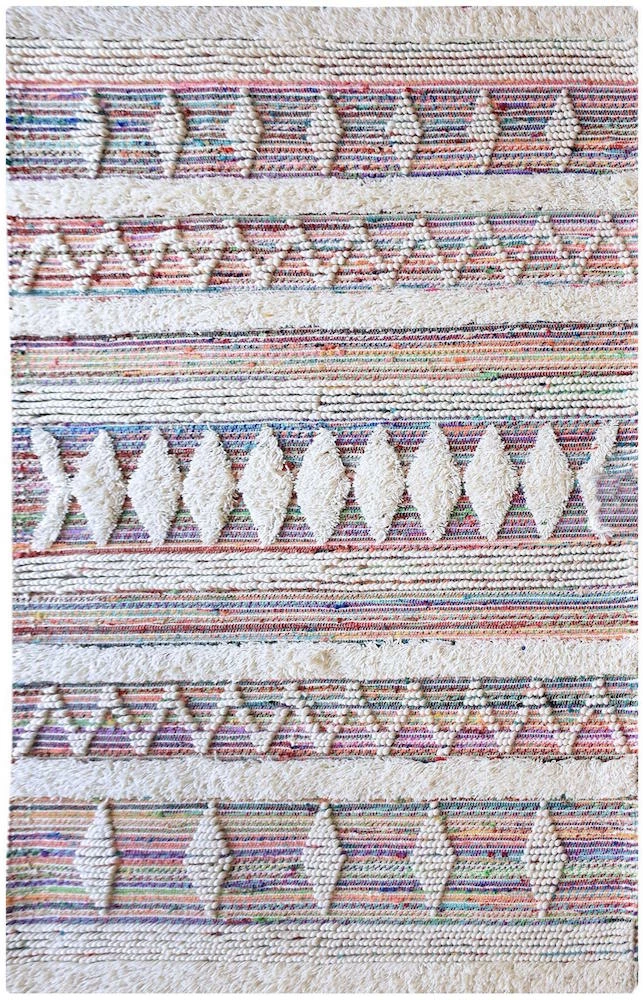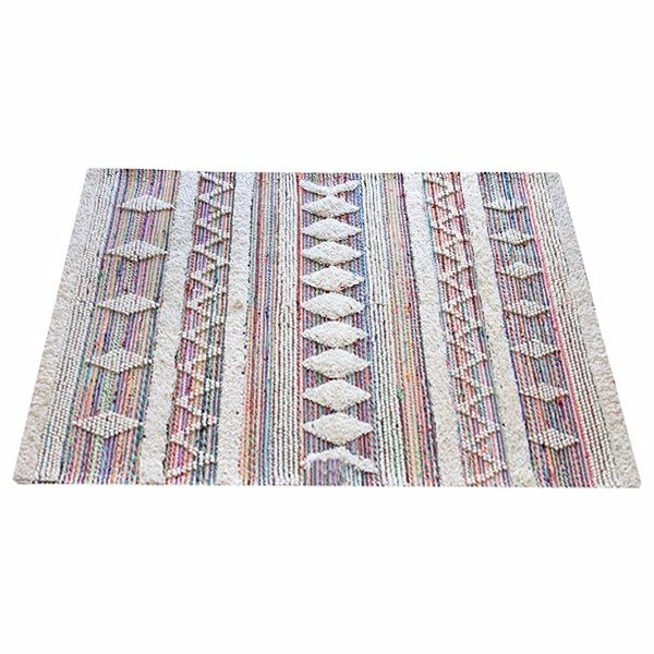 We love this Lorax rug because it has beautiful cream and colorful designs and patterns on it. It has been hand woven using wool and recycled fabric. This textured and up-cycled rug, with its excellent color combinations, impart warmth and a sense of completeness to your home decor. It is a perfect centerpiece for your living room, bedroom or your study room. You can clean it easily using a vacuum or a soft brush. There are three size variants of the product available with us. We ship these products for free to different places across the world.