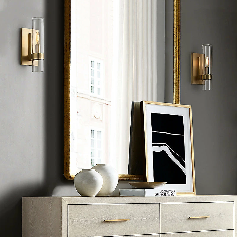 A light source and a style source, the Modern Brass Wall Sconce Light can provide a small space with ample illumination plus a dose of visual intrigue. This fixture is designed with a vintage brass-finished wall plate holding a cylindrical glass that acts as a modern candelabra. The wall-mounted design means this won’t take any floor space making it perfect for compact rooms like powder rooms and half baths. You can also use this to flank a mirror in the entryway or artwork in the hallway, dining room, or living room.