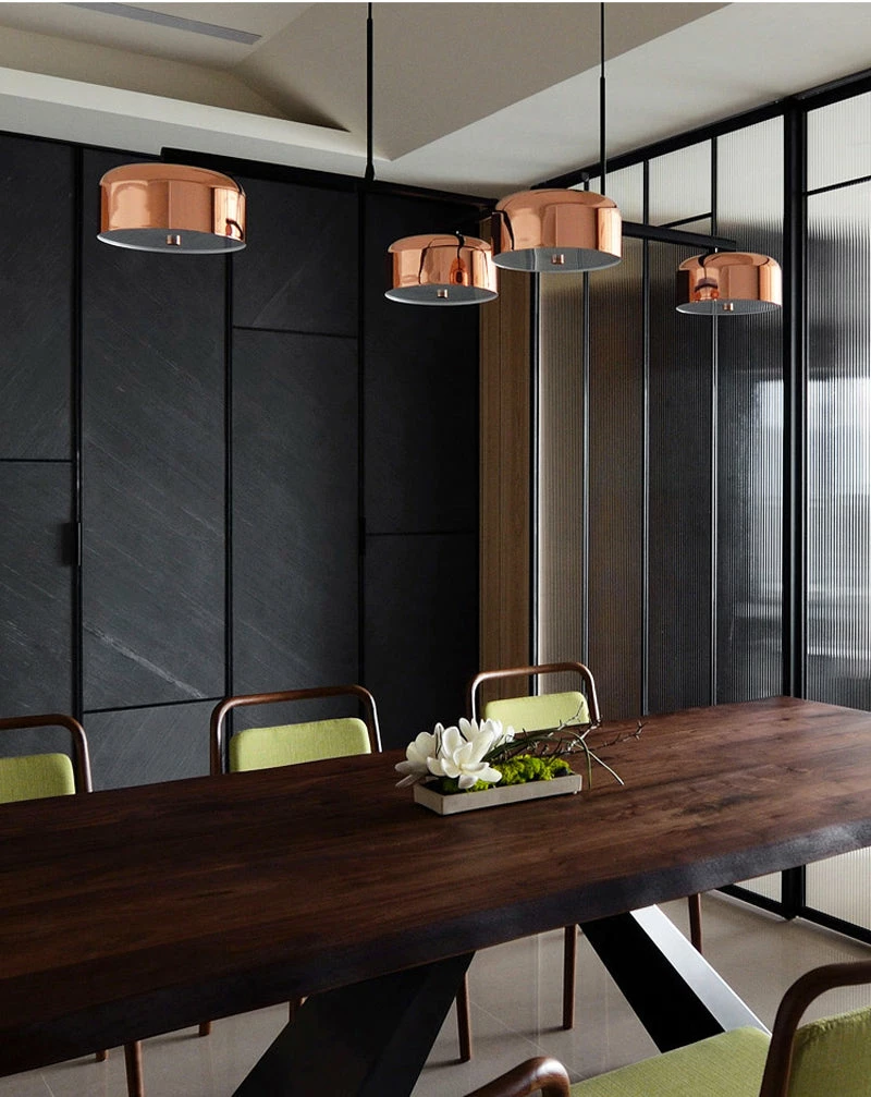 We’re in love with this beautiful Island Pendant Light. A stylish black metal frame contrasts beautifully with the pop of the copper shades. It’s designed to be used for focused ambient lighting above a dining or kitchen bar area, and features a clever dual format design – allowing it to be used in straight formation, or set two of the lights apart for a wider light distribution. The lights simply swivel out as required. We see it working well with modern and Scandinavian inspired interiors.