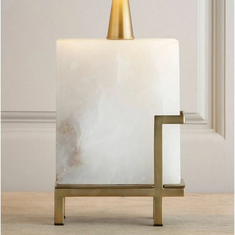 - Materials: Natural marble base, fabric shade, metal frame with gold finish