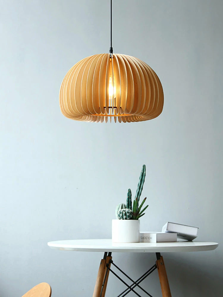 This gorgeous Modern Wood Pendant Lightย in pumpkin shapeย would add an earthy and warm effect in your living space. This beautifully hand-crafted pendant light uses solid Basswood for the lampshade, the wood surface is treated with anti-oxidation, it is not easy to fade and easy to clean. Available in three different sizes, it fits into Modern, Nordic and Minimalist home style well.