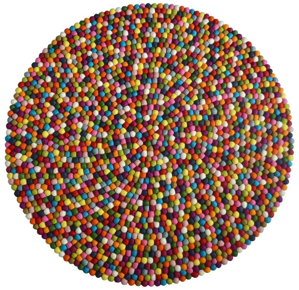 Add some colour to your home with this beautiful multicoloured felt ball rug. Felt is a natural fabric made from wool, animal hair or fibres. This rug is hand made in Nepal by Fair Trade producers using natural materials. A great choice for the kids room and available in a range of sizes.