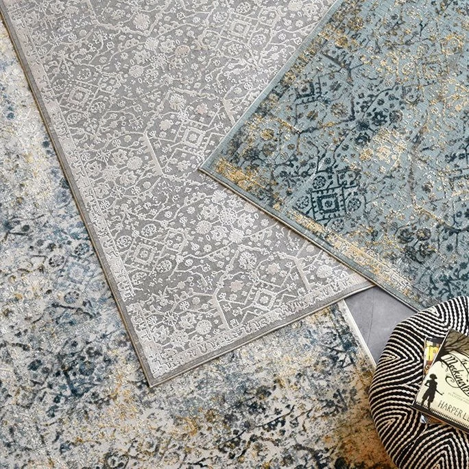 This beautiful area rug is a modern take on traditinal South Asian Tribal Rugs. We love the fusion of the traditional pattern with modern colour tones. And the blend of Viscose and acrylic gives it both a natural sheen and a lovely worn in or distressed look. It’s available in three stunning colours and three standard sizes. Or contact use for a quote on a custom size rug.