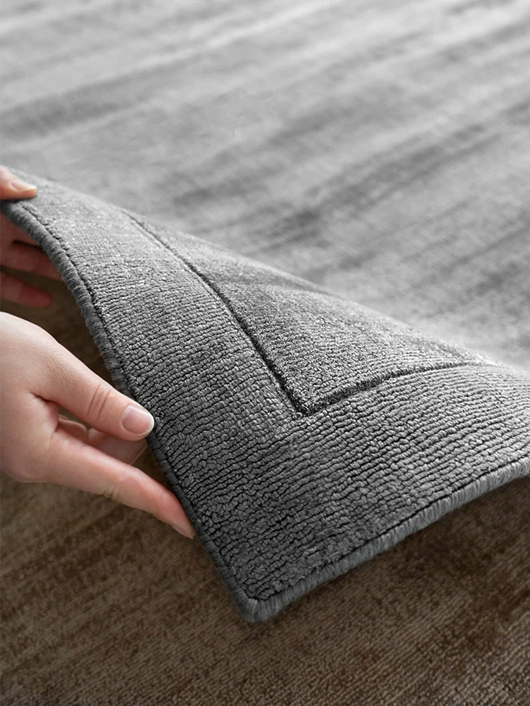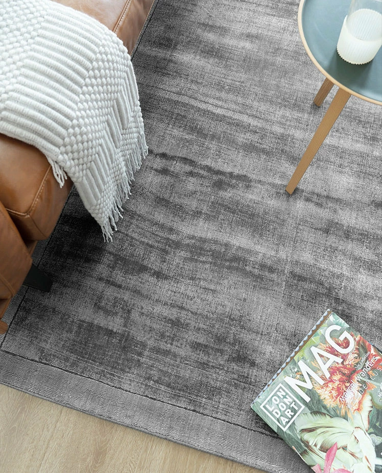 We love this beautifulย gray transitional style rug. Itย isย luxurious and elegant; provides softness underfoot. Made from Rayon (derived from natural plant fibre), the material is a great choice for warm weather as the materials is comfortable and cool.ย A 10mm pile adds texture to balance the exquisite softness of this rug and is easy to vacuum. This stunning rug, looks great with modern eclectic interiors.ย
