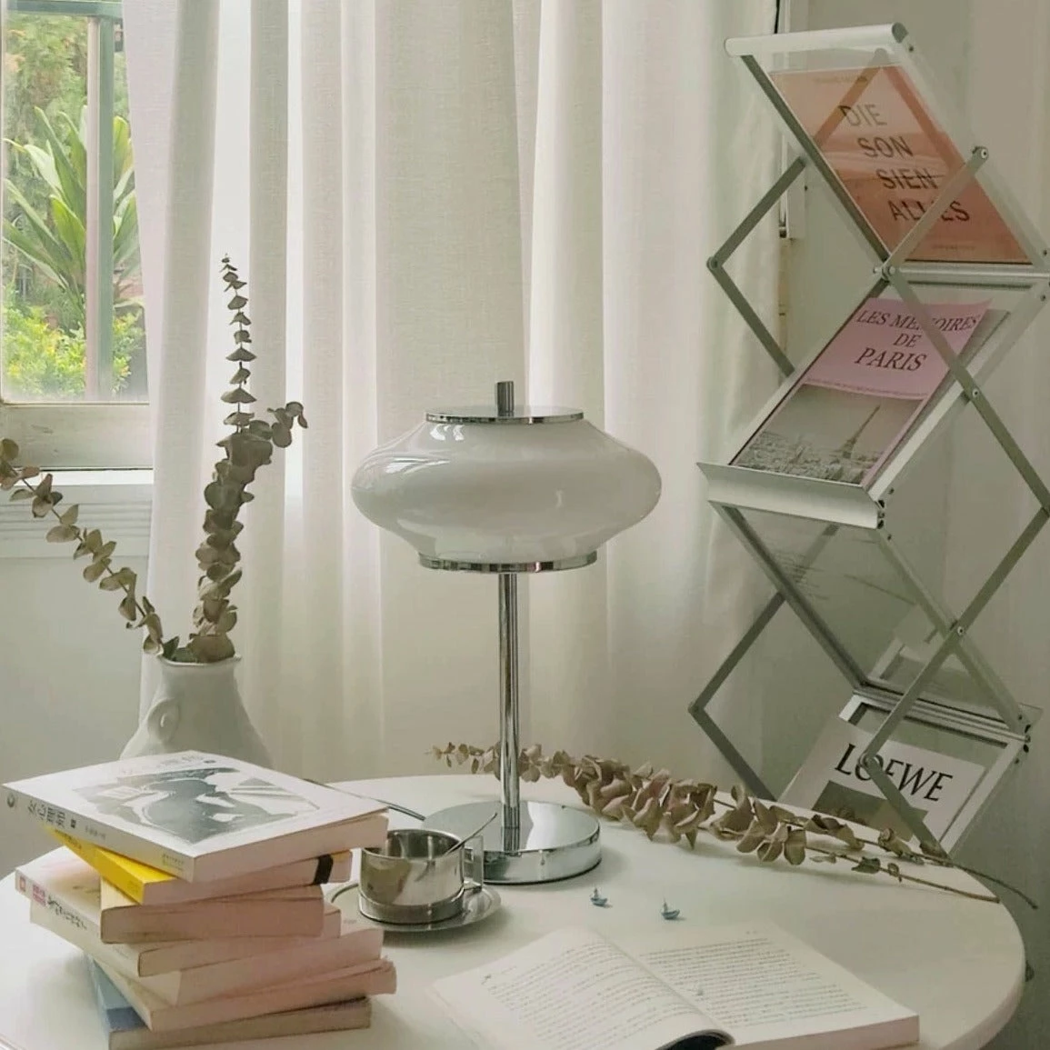 Simple geometric shapes like rectangles and spheres, without elaborate decorations, are common in the Bauhaus style. With its circular base and a spherical opaque glass shade, formerly used only for industrial lighting, our Bauhaus table lamp achieves maximum simplicity. This elegant design table lamp is more of an art piece than a lamp. It’ll look great in any room of your house.