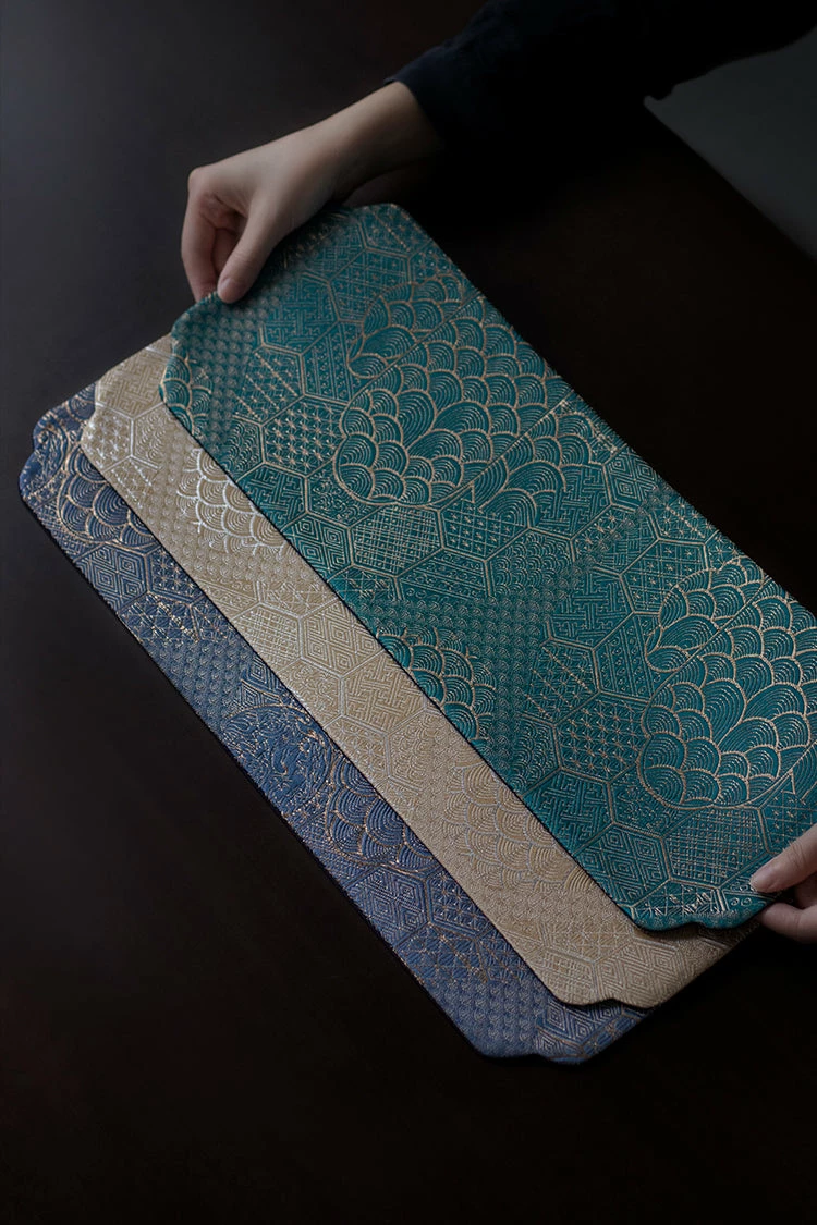 You’ll be able to throwย decorative tea or dinner parties for your family and friends with our handmade Oriental Jacquard Silk Placemats. This setย of table matsย is so beautifully designed and exquisite that they’re sure to stir a conversation. Placemats are an excellent way to prevent spillage, heat damage, and marks on your table. These beautiful placemats not only protect your furnishings, but theyย can also be used as a decorative backdrop on your console table to display ornamental objects. The placemats are sold in sets of four, in three different shapes and come in a variety of colours and styles.