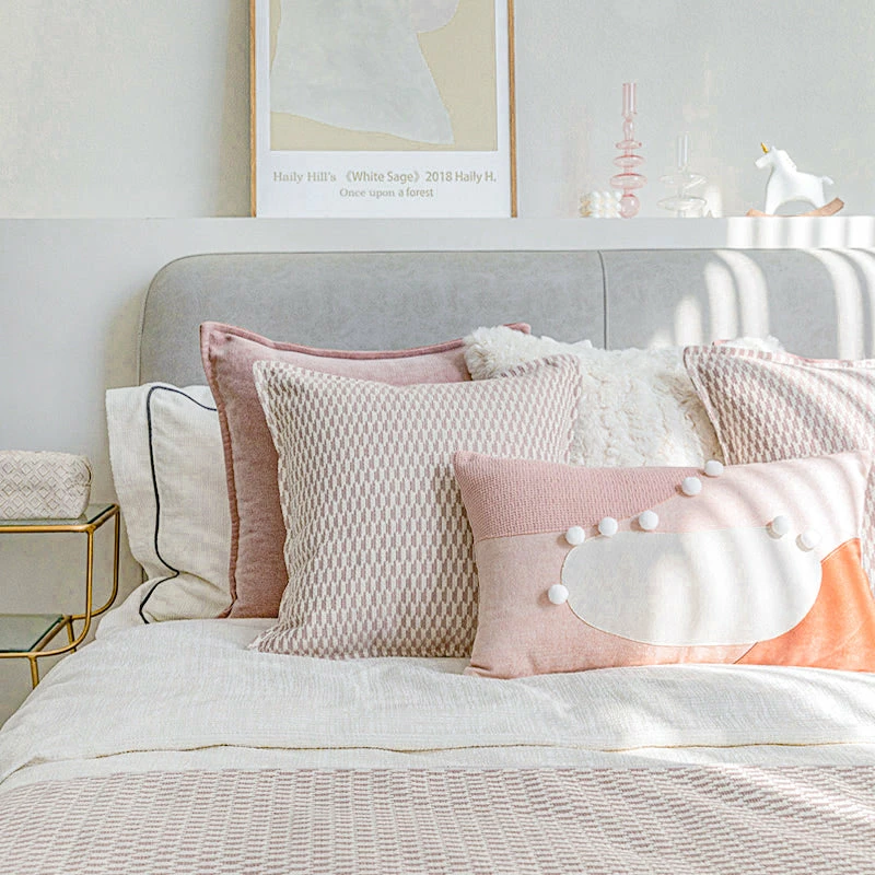 Transform your space with this set of Pink & White Geometric Pattern Bed Cushions. Get the whole set or build your own bundle to style your bedroom or living space. This cushion set is available in four different styles and sizes, with an option to include a bed runner suitable for a 1.5m or 1.8m bed.