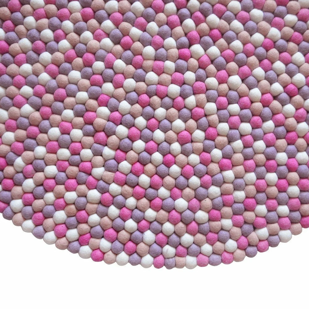 Add some colour to your home with this beautiful pink and mauve felt ball rug. Felt is a natural fabric made from wool, animal hair or fibres. This rug is hand made in Nepal by Fair Trade producers using natural materials. A great choice for the kids room and available in a range of sizes.