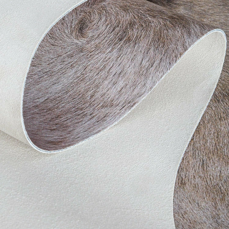 This eco-friendly brown hue faux cowhide rug will look great centered under a glass coffee table in a modern living room. It will look extra attractive, though, when layered over another rug like a sisal or jute rug. Take advantage of this rug’s irregular shape and striking print and use it as an angled topper to add depth to a room. Let the natural and bold look of this handmade cowhide rug brighten up your space, make a style statement, and give your interiors a more refined definition. 100% made of polyester with an anti-slip suede backing, this rug is durable, cool to the touch and easy to care. Four sizes are available including a mini version that will look great in a small space.