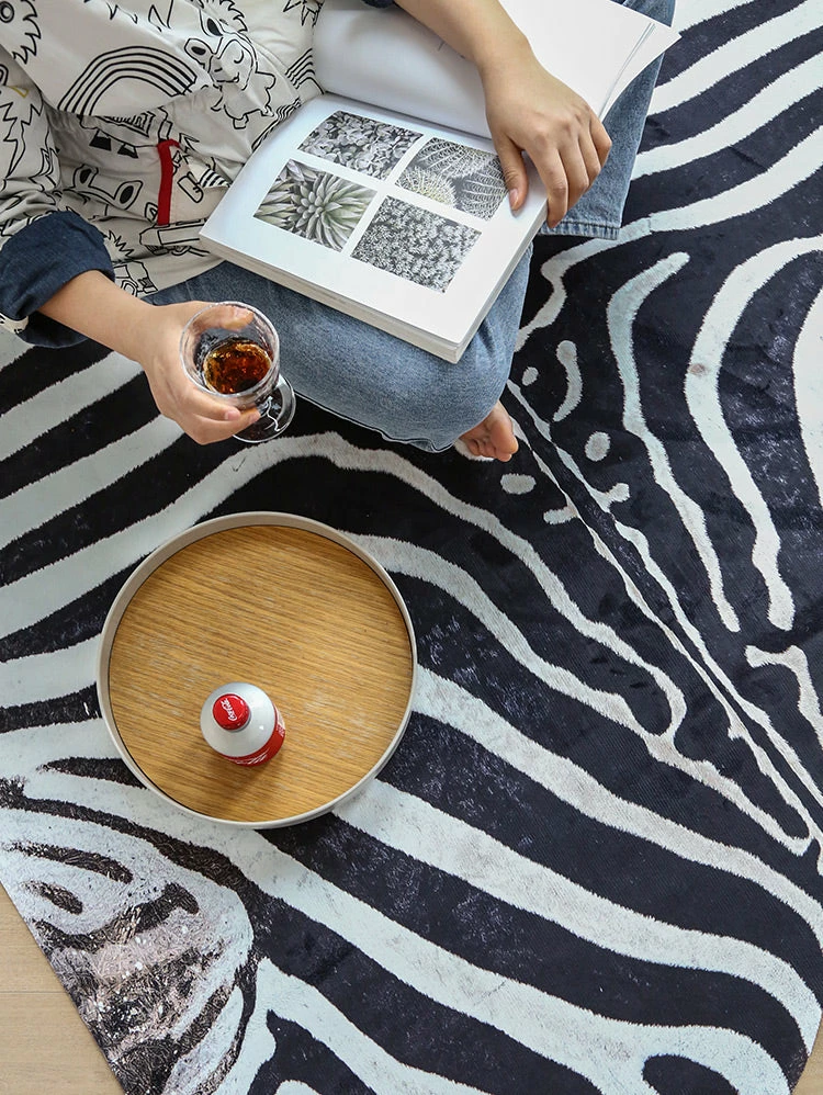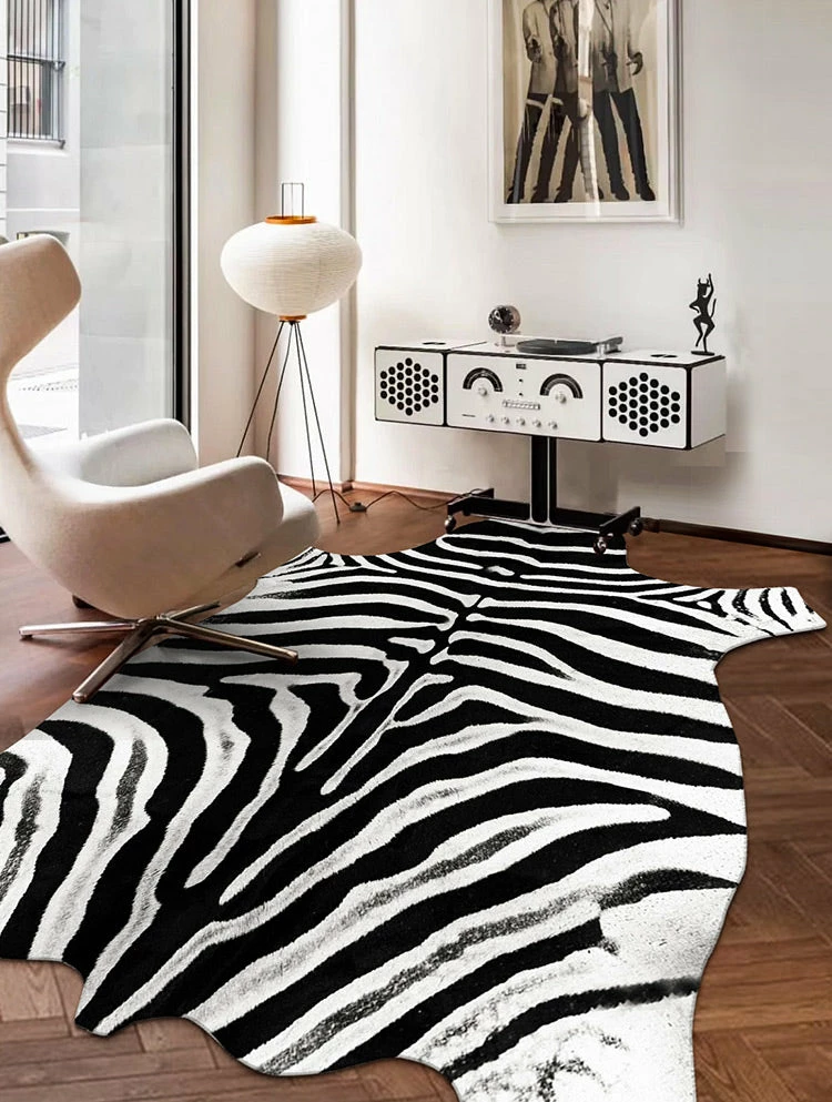 Elevate your space’s style with the Premium Zebra Print White Faux Cowhide Rug. This soft and patterned eco-friendly rug is made in 100% polyester with an anti-slip suede backing. It is designed with a white zebra print overlay for an extra luxurious finish. Layer this over a solidly colored rug or a natural woven rug in the living room for depth and visual interest. Add this rug to your home office and let this decor representing your unique style fuel your creative thinking and up your productivity game.