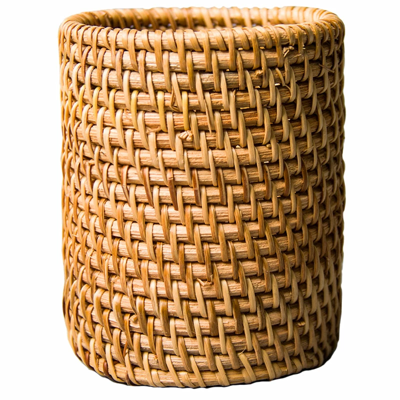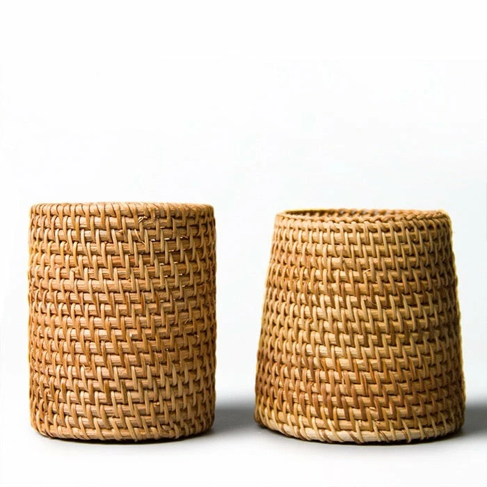 Let your dining area and kitchen exude a relaxing vibe beach-style with this Rattan Utensil Holder. This small wicker basket for spoons, forks, chopsticks and knives brings an earthy vibe to your space. Perfect for organizing flatware and for adding character to a kitchen countertop. A natural and sustainable product, this handwoven utensil holder has a versatile appeal and function, too. Feel free to use it to hold make-up brushes, pens or art supplies. Available in regular or tapered design.