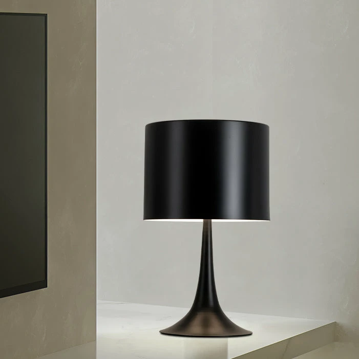 - Features:ย Aluminumย drum lampshade, Powder-coated one-piece umbrella shape base