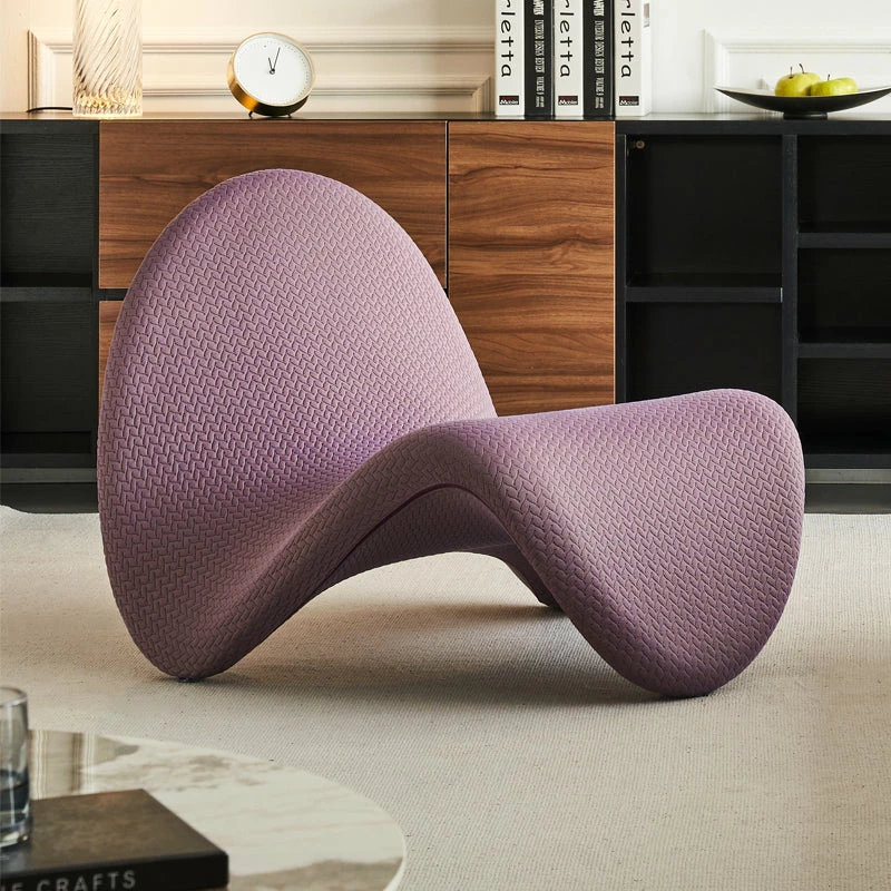 The Tongue Chair’s curvy shape is very inviting! The back and low, deep-set seat are made up of a sculptural wooden base, which was originally designed by Pierre Paulin in 1967. This replica is equally amazingly comfortable because it encourages the user to recline and lay back into its contours. Textured stretched jersey in a variety of neutral and gradient colours is used to create our reproduction.