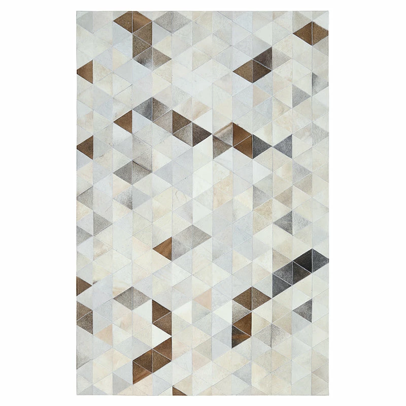 Patchwork hide rugs are great, and this piece is particularly unique. Constructed from triangular patches of cream, fawn and brown, the pattern gives it lovely visual texture that’s bound to bring style and interest to any room. It has a contemporary look that we see working well with Eclectic interiors. Hand made from natural cowhide leather, each piece is unique. It’s available in three standard sizes and the price includes Free Delivery in Hong Kong.